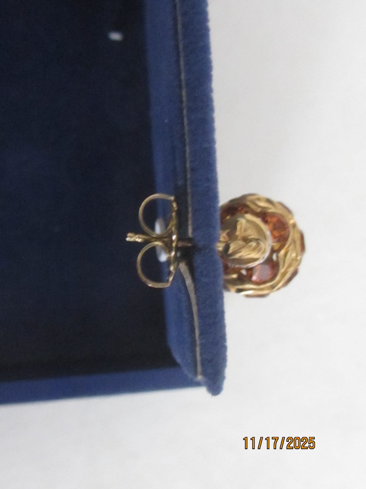 $ 47.52Silver Earrings Amber Genuine Natural Gems Solid Sterling Yellow Gold Coated