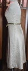 This is a great Davids bridal gold brocade halter tea length cocktail dress. The dress has a zipper in the back . Size 4 . Bust 34". Waist 26". Hips 36 ". Length from under the armpit to the hem 35". Length from the top of the shoulder to the hem ----". THE DRESS IS IN GOOD CONDITION WITH NO RIPS STAINS OR ODORS. Place a bid only if you are a serious buyer. Email us if you have any questions before bidding. Payment is expect to be paid within 7 days after auction ends. I do follow eBay's Non Paying Bidder Program. We don’t waste time; we ship the next day after payment in most cases. Please email us if you have any questions before bidding. Please check our other auctions and take a look around the store, thanks for stopping by. Steve & Rena Return policy. The item must be returned and postmarked with delivery confirmation within 14 days of delivery. Item to be returned in the same condition as received. Tag or tags must be attached. Buyer responsible for all shipping costs
