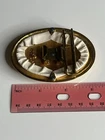 Day-Lor Vintage Gold Tone Cream Leather Statement Belt Buckle. Some minor wear. Estate sale item. Sold as is. Described to the best of my ability. I do not clean or polish any items I list, sold as I found them. Please ask any questions before placing your bid, and I will answer as best as I can. Please see all photos for measurements and condition. Will combine shipping. Thank you