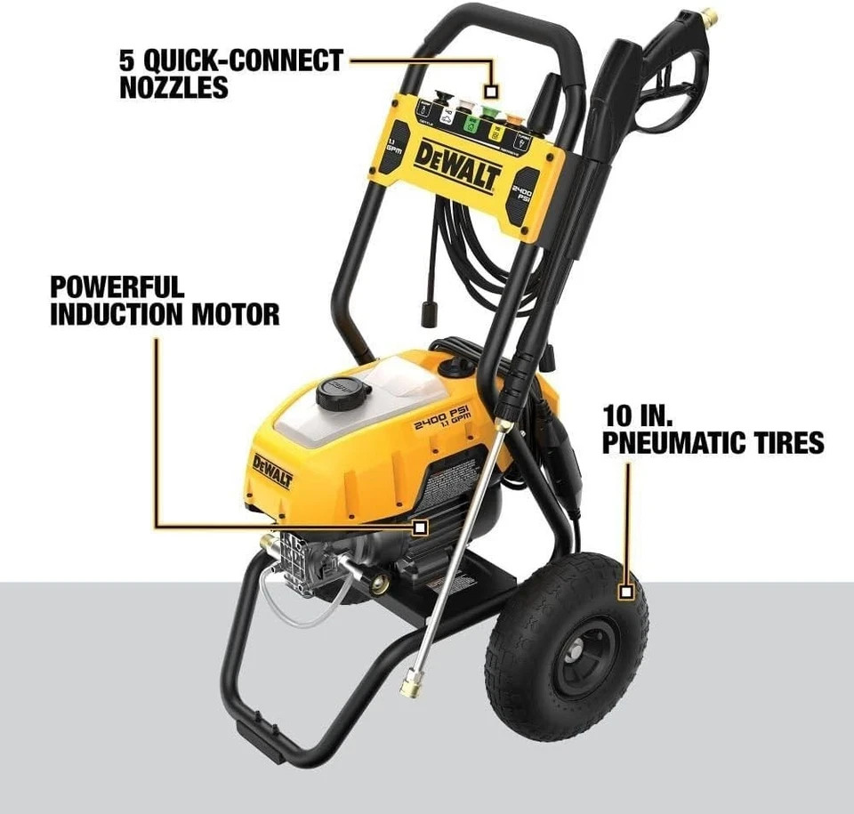 This DeWalt pressure washer is a beast! It blasts through grime with 2400 PSI power, making cleaning driveways, decks, and outdoor furniture a breeze. The built-in storage keeps nozzles handy, and DeWalt’s rugged build ensures it lasts. Super convenient and reliable for heavy-duty jobs—worth every penny!
