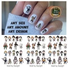 Qty will be listed in title for each depending on item your ordering ! Sublimation, Digital, Nail Decals, Iron On, etc?. ALL IMAGES ON ANY LISTING CAN BE CUSTOMIZED FOR NAIL DECALS, DIGITAL DOWNLOAD, SUBLIMATION PRINTS, LARGER WATERSLIDE PRINTS. If you need combined shipping when ordering please add all items to cart and request invoice. 1/2 orders .97 cents eBay standard w/tracking 3/4 orders 1.97 ebay standard w/tracking 5 or more orders $5 USPS ground with tracking For expedited shipping choose priority during checkout. At this time we do not offer overnight shipping. IMPORTANT . We mail orders 3 times a day if you have any problems with delivery please contact us first so we can fix it. Thanks IF YOUR ADDRESS IS NOT CORRECT YOU MUST MAKE A NOTE DURING CHECKOUT !!!!!! So check it !!! Thanks for looking & check us out on FB to see all our designs together. (Even Banned) Instructions always included ! But we also have several videos on youtube just search apply clear Waterslide nail decals. Background is always clear, best used on light colors or white. Can be used on hot wheels, fishing lures, cups, etc.. ( see pictures for examples ) Default size 9-13mm fits standard press on nails see pic for example. (Toenail Decals are smaller) CHILD SIZE available on request , make note during checkout. DO NOT GO BY ESTIMATED DATES GIVEN BY EBAY / ETSY Shipped with Tracking number to U.S. always ! Takes 7-14 days International orders shipped first class stamp letter 7-21 days. Digital Downloads will be sent immediately for those listings. Thank We thrive to get positive feedback. If you have a problem any problem at all please message us before leaving feedback and we will do whatever we need to help you get it fixed. We provide video proof of items being mailed every day as we ship. You can even text us !!! We sell to 53 salons over the world with great reviews and repeat customers. If you do not see it posted WE STILL HAVE IT JUST ASK US ! If not we will make it ! We stand by our work We always use high quality ink and paper We double and triple coat for longer protection and wear. We include a bonus with each and every order. We strive to make our customers happy ! We do whatever you like !! We have custom listings for larger quantities & sizes. Colors may be slightly different than screens? Instructions always included ! Gift Wrap available for $1.00. Glitter Finish also $1.00 If needed pls request invoice before paying. We also do custom designs for anything nails, shirts, tumblers etc? We also sell these images in sublimation, shirt transfers, larger waterslide etc. just message us. Thanks for looking :)