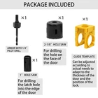 Please refer to the installation video. 【Package Included】- The door lock installation kit includes: 1 x adjustable plastic guide template, 1 x 2-1/8"(54mm) hole saw, 1 x 1"(25mm) hole saw, 1 x arbor with drill bit. 【High-quality Material】- Two Hole saws are made of durable carbon steel & guide template is made of reinforced plastics, which has long service life. 【Easy to Set】- The adjustable guide template is convenient for accurate drilling, and is equipped with snap-lock arm for selecting door width and backset. Drill one side of the door panel vertically to about half position, and then drill the other side of the door panel until it penetrates. 【Widely Applicable】- The design is suitable for the most common lock size in daily use for wooden doors. The adjustable plastic guide template is suitable for 1-3/8 inch, 1-1/2 inch and 1-3/4 inch thick doors and 2-3/8 inch and 2-3/4 inch backsets.