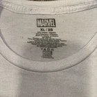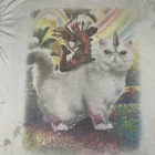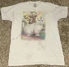 Get ready to show off your love for the Marvel Universe with this Vintage Deadpool T-Shirt featuring the iconic riding cat unicorn design. This regular fit T-shirt is made for men and is available in XL size. The white color of the shirt perfectly complements the Deadpool and Cat characters, making it a great addition to any comic book fan's wardrobe. Represent your favorite Marvel characters with this unique T-shirt, perfect for any occasion. The shirt is made of high-quality material and is designed to provide comfort all day long. Add this vintage T-shirt to your collection today and show off your love for the Marvel Universe in style. Light stain print