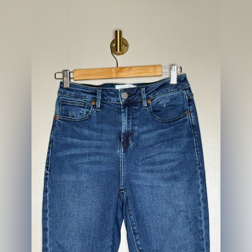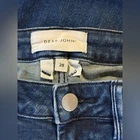 Dear John high rise skinny jeans in a classic medium blue wash with a modern raw hem finish. Designed with a flattering high-rise waist and slim, streamlined leg that creates an elongated silhouette while remaining comfortable and easy to wear. Clean, minimal denim that works effortlessly year-round. These jeans are an ideal everyday staple and style easily with sweaters, tanks, blazers, boots, or sneakers. A great option for casual wear, elevated basics, capsule wardrobes, and minimalist styling. Brand: Dear John Size: 28 Fit: High rise skinny Color: Medium wash blue Hem: Raw hem, intentionally unfinished Measurements laid flat: Waist: 13 in Inseam: 26 in Condition is good pre-owned with no major flaws noted. Raw hem is part of the original design. Keywords: dear john jeans, high rise skinny jeans, womens denim size 28, raw hem jeans, modern denim, everyday jeans, minimalist wardrobe, classic denim, capsule closet, flattering skinny jeans Model image was created with AI for styling reference only.
