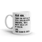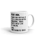 Dear Mom, Thanks For Puttin Up Coffee Tea Ceramic Mug Office Work Cup Gift Give this mug as a funny, unique or personal gift. Our mugs make a great gift for any occasion even if its for yourself! Printed in the USA! Features • High quality detailed professionally printed directly onto the Ceramic Mug. • Made in the USA, at our own production facility in Dallas, TX. • 11 ounce White Ceramic Coffee Mug • Dimensions: 3.75" tall by 3" diameter • Microwave & top shelf dishwasher safe Our mugs are made using fine white ceramic with a glossy glaze finish. Each coffee cup is crafted using professional printers and inks, and then used in a heat press to permanently place the image on the mug. Each original custom made mug is permanently fused so the art becomes part of the mug, meaning that the image will not peel away, fade or scratch off. Makes a great gift idea for any occasion. Microwave & top rack dishwasher safe. Family owned and Operated Dallas, TX Since 2010. Need More Mugs? We offer Bulk Wholesale Pricing, please message us for more details. Payments: Due immediately. Payment accepted ONLY from a confirmed and verified PayPal Account. We ship most orders received before 3PM same business day. Operating Hours : Weekdays (Mondays - Fridays) from 10am CST - 5pm CST (CENTRAL TIME, DALLAS!) WEEKENDS (Saturdays and Sundays) AND HOLIDAYS EXCLUDED!! Shipping Terms: We ship in the USA only. Usually ships within 24 hours (1 BUSINESS DAY, WEEKENDS AND HOLIDAYS EXCLUDED!) PLEASE contact us via EBAY MESSAGING/EMAIL (CONTACT SELLER) if you have any questions or concerns.