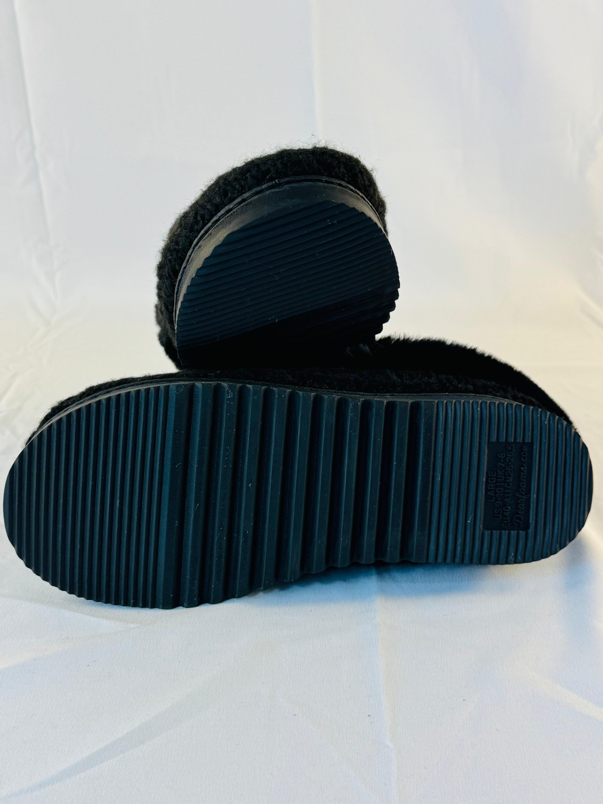 Dearfoams Women's Memory Foam Cozy Soft House Slippers are perfect gifts for women looking for comfortable and stylish footwear. many sizes available . These slip-on slippers feature a solid black color with round toe shape, flat heel, and memory foam insole for ultimate comfort. Made with faux fur upper and rubber outsole, these slippers are ideal for casual occasions during the winter, fall, and spring seasons. The Dearfoams brand is known for quality and comfort, making these slippers a great choice for women seeking cozy and personalized footwear.