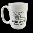 Debbie Downer White Coffee Mug NBC Saturday Night Live SNL 2014 RACHEL DRATCH Mug is in beautiful condition. No signs of use. This is a heavy duty mug weighing in at 1 lb. Holds 15 oz but I think it’s considered a 16 oz mug. Original manufacturer nelsonline, embossed with words Taiwan. -221282