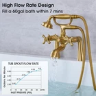 Deck Mount Clawfoot Tub Faucet Kit 2 Hole High Flow Deck Mount Tub Faucet with Sprayer 6.85" Center Brushed Gold Vintage Bathtub Faucets for Clawfoot Tub with Valve and Diverter with Handheld Shower 🛁【 Anti Corrosion Outer Layer】Hanallx deck mount clawfoot tub faucet set uses 4 times thick brass, the outer layer passed 48h extreme cold and heat test, hydrochloric acid spray test, electroplating thick layer test and sand impact test. Ensuring prevent corrosion and water stains, easy to clean. 🛁【 Anti Leakage Valve 】The leakless ceramic valve has passed 30 thousands times of water tightness test, ensuring the faucet life, durability and reliability. Ceramic valves provide precise water flow control to prevent water backflow and temperature fluctuations. meet US lead-free standards. 🛁【High Flow Rate】The tub filler has high flow rate, it will fill a 60gal bath within 7mins, using the diverter handle to easily switch from the spout to handheld shower. Complies with EPA WaterSense and CEC Standards. 🛁【Lifetime Limited Warranty】If there are any damaged accessories when you receive bathtub faucet, we will provide a new replacement (no-charge). And you don't need to purchase other parts or hire a plumber, it only takes 20 minutes to complete. The standard usage time is 30-42 years, covered by the Hanallx's lifetime limited warranty. If you have any questions, the Hanallx US after-sales team will provide professional support and 1-on-1 follow-up (12H/7D). 🛁【Product Size】A deck mount faucet set that can withstand a maximum deck thickness of 1.57", the two holes centers distance is fixed 6.85", overall height is 10.35", fits most tub. 1/2 " US standard hose, the 304SS exterior will ensures flexibility and prevent corrosion (3/8" hose can be customized). 🛁【Vintage Style】Gorgeous brushed gold deck mount clawfoot tub faucet set, antique and elegant design, smooth surface, 2 cross handles (hot and cold), integrated water outlet, with telephone shaped handheld shower, can directly installed on the bathtub fixture, suitable for clawfoot tub, garden, RV, bathroom, will give your house to a new look. Shipping We offer FREE shipping on all orders! We ship within Three business days of payment, usually sooner. We use a selection of shipping services such as UPS, FedEx, USPS etc. We only ship to the lower 48 states, no APO/FPO addresses or PO Boxes allowed. Local pickups and combined shipping options are not provided at this time. Return You can return a product for up to 30 days from the date you purchased it. Any product you return must be in the same condition you received it and in the original packaging. Please keep the receipt. Payment We accept payment by any of the following methods: PayPal Please pay as soon as possible after winning an auction, as that will allow us to post your item to you sooner! Feedback Customer satisfaction is very important to us. If you have any problem with your order, please contact us and we will do our best to make you satisfied. Contact Us If you have any queries, please contact us via ebay. We usually respond within 24 hours on weekdays. Please visit our eBay store to check out other items for sale! Thank you for shopping at our store.