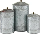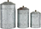 Deco 79 Metal Living Room Decorative Jars Galvanized Ribbed Gray Product Details Finish Type: Galvanized Unit Count: 1.0 Count Capacity: 460 Cubic Inches Manufacturer: Deco 79 Product Dimensions: 7 x 7 x 11.95 inches Item Weight: 4 pounds Item model number: IR 23257 Is Discontinued By Manufacturer: No Finish types: Galvanized Dishwasher compatible: No Assembly required: No Number of pieces: 1 Batteries required: No Included Components: Decorative Jars Color: Gray Material: Iron Product Dimensions: 7"L x 7"W x 11.95"H Item Weight: 4 Pounds Brand: Deco 79 Rustic texture and old age look Both decorative and functional It is food safe Set of three 11", 9" and 7" farmhouse rustic galvanized iron round canisters, hammered finish with subtle fence-ribbed sides and oxidized black ball-capped lids. Vintage style metal canisters with lids feature a galvanized finish. Use chalk-like markers to note the contents of the jars. Suitable to use as a decorative item. Best for both indoor and outdoor use.