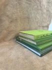 This decorative book bundle lot includes four hardcover books with a green and blue tone color scheme, perfect for home decor. These are previous library books with typical stamps and some stickers. Minor damages (see pictures).