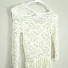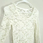 Decree Lace Top SIZE: Tagged Size XS (I believe Decree is geared toward junior sizing) *** ~ Approx measurements in pics CONDITION: Great Condition. No holes, tears, stains FABRIC: Nylon / Spandex CARE: Machine Wash DETAILS: ~ Cream Floral Lace / Mesh ~ Has a bit of stretch ~ Round Neck ~ Peplum ~ The back is a little longer than the front ~ Sheer ~ Styles: Romantic, Feminine, Cottage, Cottagecore, Soft Girl, Casual, Dressy *** Make sure it fits - Sizing varies between brands and decades. It's best to know your body measurements and compare them to clothing measurements and your preferred fit. If you need help on how to do this, or additional measurements, let me know. I will be happy to help.
