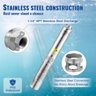 Enhanced Pump Flow & Head: Power: 1.5HP, 115V; Diameter: 4" (for well casing larger than 4''); Discharge: 1-1/4" NPT. This deep well submersible pump is designed with 8-stage thermoplastic impellers, providing 37GPM max flow and 276 ft max head. It comes with an external control box and a 33 ft electric cord, making life without modern plumbing a lot easier. Pump out your worries with ease and relax. No challenge is too big for you. Upgraded Stainless Steel: The whole frame of our deep well pump is unlike anything on the market. It is made of stainless steel, including the outlet and connecting components. You don't have to worry about it becoming rusted or corroded after being underwater for a long time. With ETL certification and IP68 waterproof grade, the pump can be used for 8-10 years. Stop wasting time! The perfect choice is in front of you! Reliable Copper Motor: Are you tired of previous submersible well pumps failing you? Are you ready for consistent satisfaction and quality? The powerful copper motor and high-precision rotor promise long-term stable running. The motor features built-in overload protection, allowing it to automatically stop when stuck or during abnormal situations to prevent burning. NOTICE: DO NOT use it without water or at a low water level to avoid idle running. Trouble-free Check Valve & Filter: This well pump has a built-in check valve to prevent back-flow (an additional check valve is highly recommended). The stainless steel filtration mesh is designed to filter impurities. You can add a layer of gauze in front of the filtration inlet for a new drilled well that may contain excessive granular sediment. Keep impurities out without the headache. Use It Anywhere: Whether you want to solve water supply problems for industry, farmland, or home, this deep water well pump is the one you can trust. It works excellently as a garden water source and sprinkler for the kids. You can use the pump for extracting water from deep wells, reservoirs, canals, rivers, and other water-lifting works. Product Description Enjoy Quick Pumping with VEVOR Deep Well Pump The video showcases the product in use. The video guides you through product setup. The video compares multiple products. The video shows the product being unpacked. Are you worried about the water supply for your family or farmland? Well, get ready to have your well up and running again in no time! Our deep well submersible pump provides a large flow and high head lift, meeting all your water needs. Pump it up today with our submersible well pump! 1 Large Flow 2 High Head 3 Premium Quality 4 Reliable Details 1 Vertical Installation 2 Horizontal Installation 1 Well Pumping 2 Farm Irrigation 3 Domestic Water 4 Livestock Water How long is the electrical cable that comes with the pump? 33 ft. Does this deep well pump have the wire splice kit included? Yes. Does this deep well pump require a foot valve or some type of screen on the bottom? This pump has a built-in check valve. However, it is always recommended to install additional check valve(s) on top of the pump and above. Thank you. How many inches of wells does this pump fit? Fits a 4-inch well.