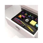 Organize everything from writing utensils to paper clips, tape and notepads with this compartmentalized drawer organizer. 1" high organizer fits most standard desk drawers and offers nine compartments for easy access to small items. Organizer is made of durable plastic with recycled material. On Jun 28, 2024 at 10:57:40 PDT, seller added the following information: