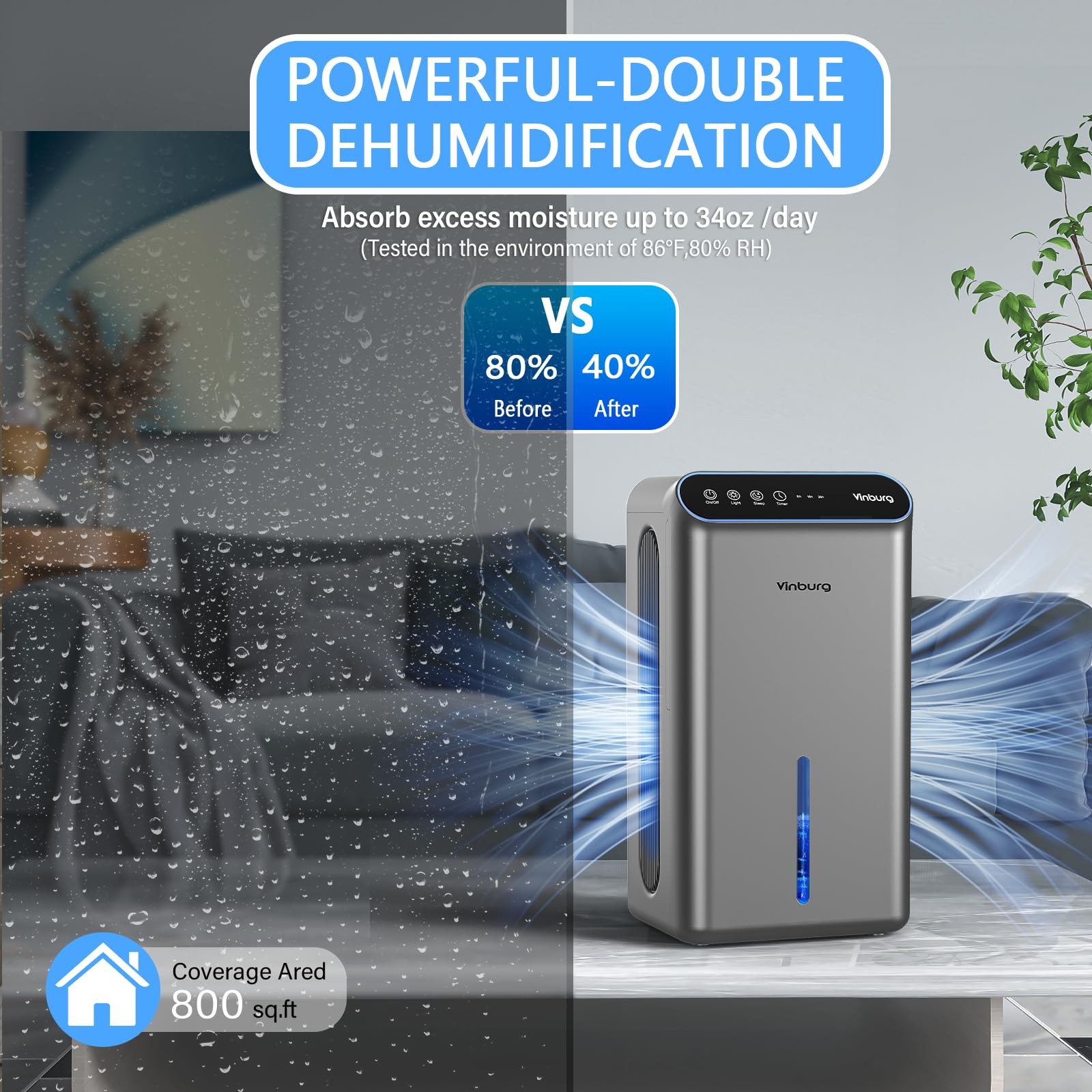 Dehumidifier,95OZ Dehumidifier for Home 1000 Sq.Ft - Quiet with Auto Shut Off...