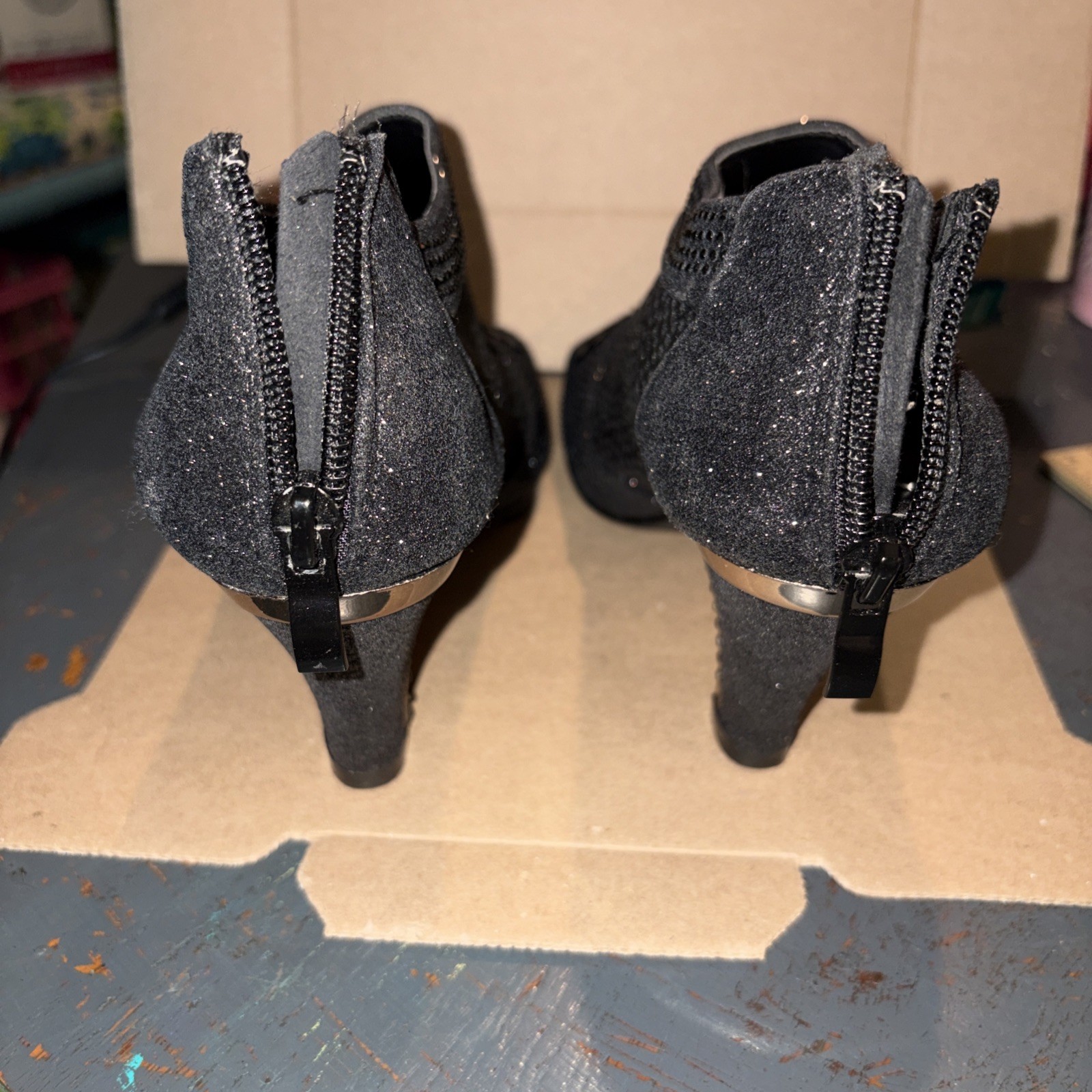 $ 13.2David Tate Rome Womens Black Narrow Leather Hook & Loop Wedges Heels Shoes 11