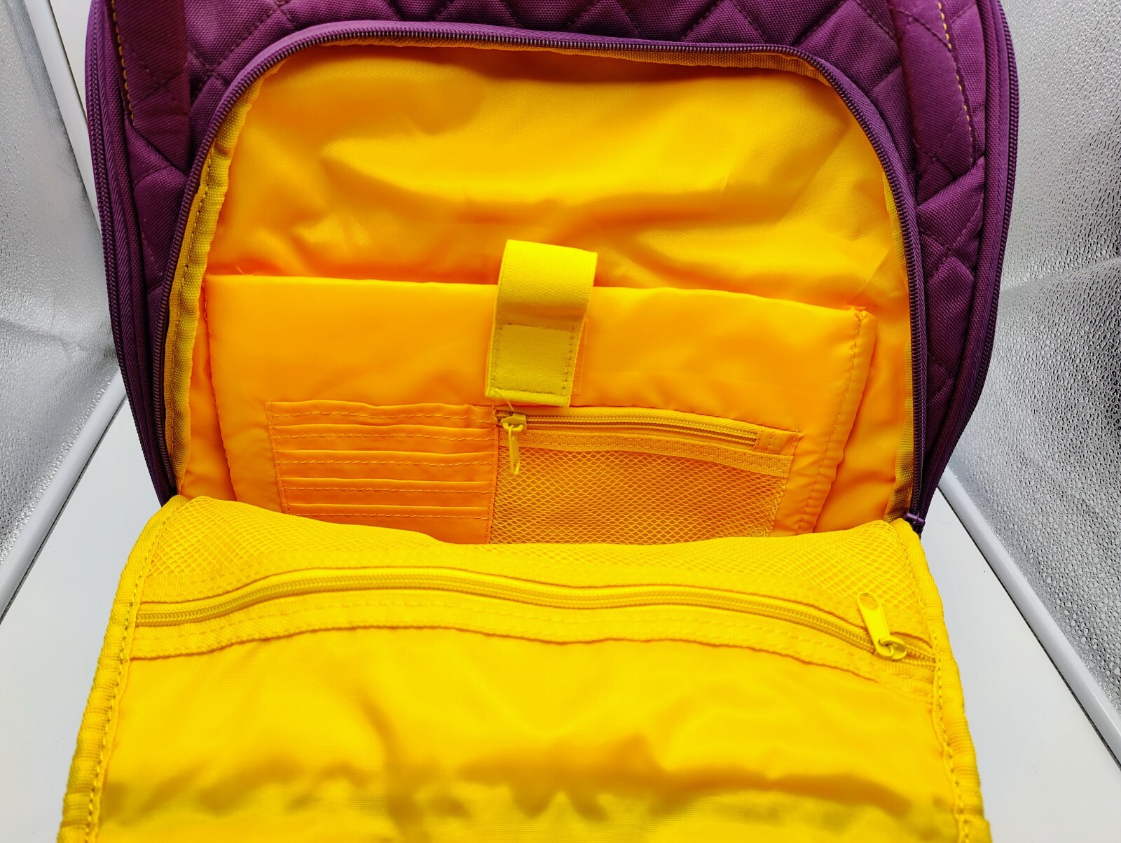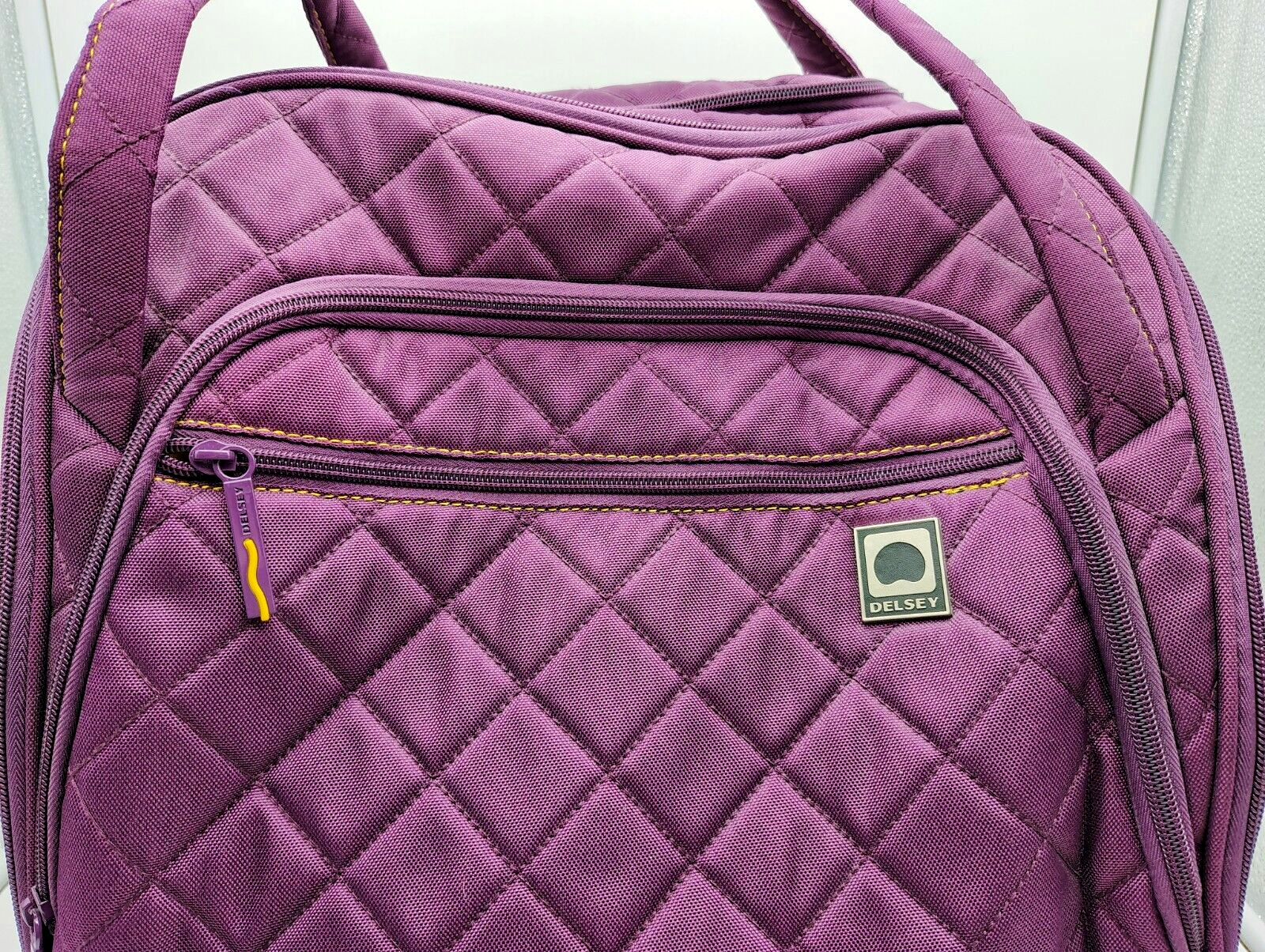Color:Plum Exterior/Yellow InteriorType:Underseat Luggagegtin13:Does not applyUPC:Does not applyCountry/Region of Manufacture:ChinaPattern:Quilted SolidSize:15"Brand:DELSEYFeatures:Carry On, Laptop Compartment, Soft Case, Water Bottle Pocket, Wheels/Rolling, Luggage Band