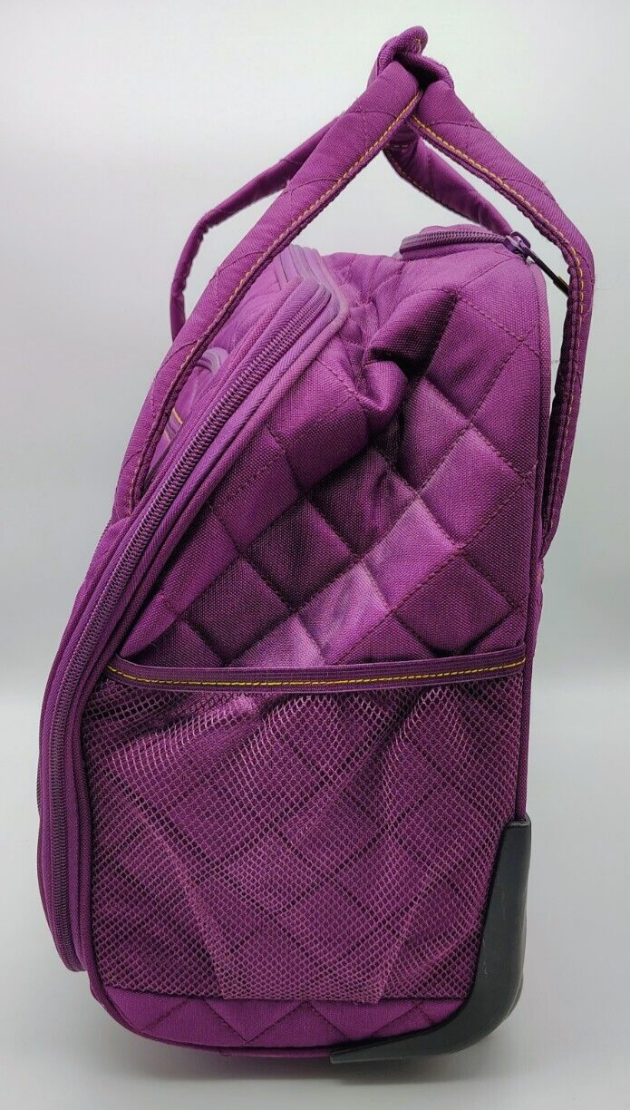 Delsey Paris Quilted Plum & Yellow Underseat Weekender Bag with Handle and Wheels
