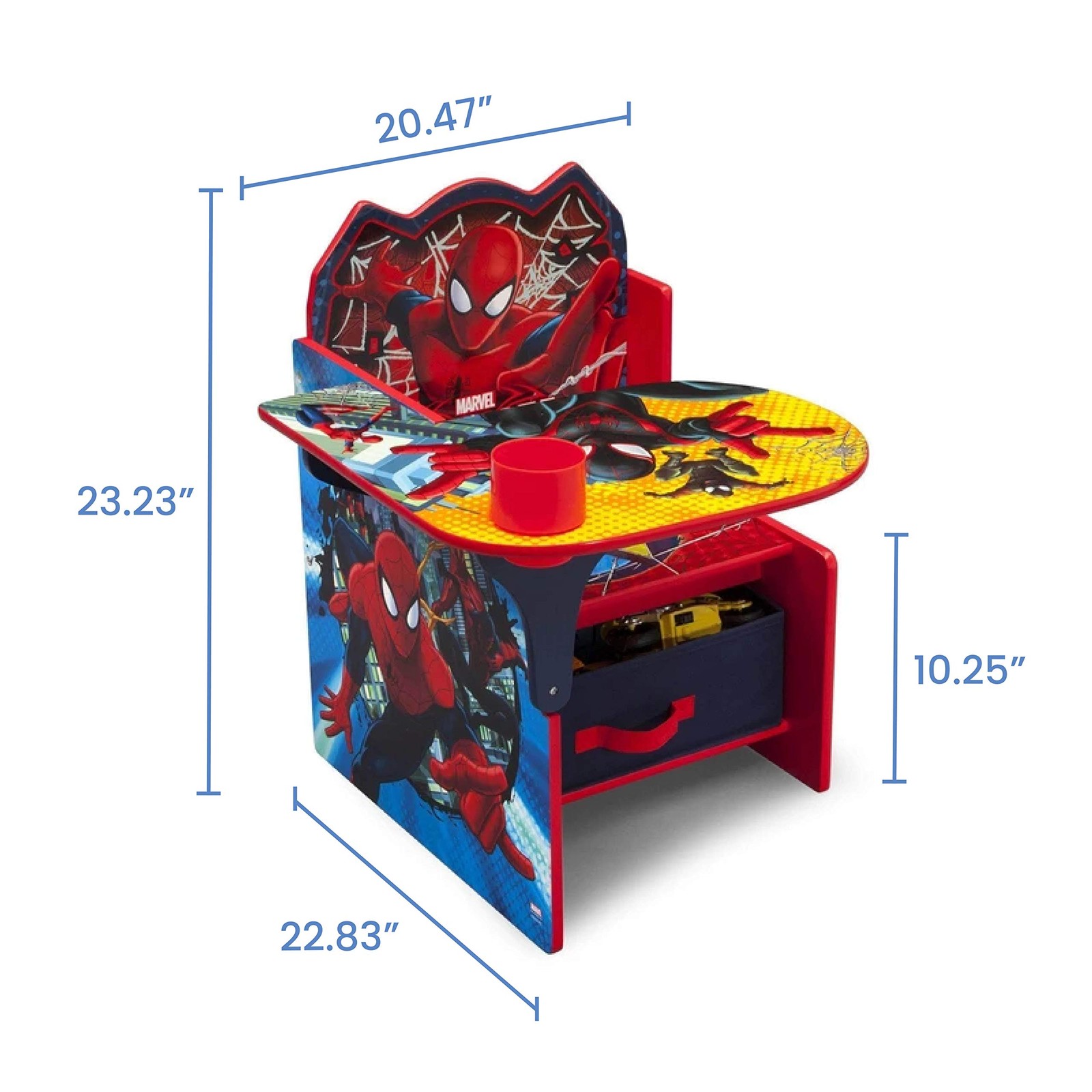 Delta Children Chair Desk With Storage Bin, Spider-Man RECOMMENDED USE: Recommended for ages 3 ; Holds up to 50 lbs. FOR SPIDER-MAN FANS: This fun chair desk features colorful graphics of Spider-Man; Ideal for homeschooling or remote learning KID-FRIENDLY DESIGN: Desk sits low to the ground for easy access; SIZE: Assembled dimensions: 20.47"L x 22.83"W x 23.23"H TONS OF STORAGE: Desk features pull out storage bin under the seat that provides ample space for toys, art supplies and more; Built-in cup holder is ideal for art supplies DURABLE CONSTRUCTION: Made of engineered wood and fabric built to withstand years of use; Scratch-resistant finish protects the colorful graphics; Wipes clean easily with dry cloth Shipping We offer FREE shipping on all orders! We ship within Three business days of payment, usually sooner. We use a selection of shipping services such as UPS, FedEx, USPS etc. We only ship to the lower 48 states, no APO/FPO addresses or PO Boxes allowed. Local pickups and combined shipping options are not provided at this time. Return You can return a product for up to 30 days from the date you purchased it. Any product you return must be in the same condition you received it and in the original packaging. Please keep the receipt. Payment We accept payment by any of the following methods: PayPal Please pay as soon as possible after winning an auction, as that will allow us to post your item to you sooner! Feedback Customer satisfaction is very important to us. If you have any problem with your order, please contact us and we will do our best to make you satisfied. Contact Us If you have any queries, please contact us via ebay. We usually respond within 24 hours on weekdays. Please visit our eBay store to check out other items for sale! Thank you for shopping at our store.