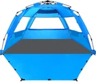 Larger Space at a More Affordable Price - A size upgrade to 99"L x 55"W x 55"H, enough space for 2 adults plus 2 kids. Easy Set Up with Stability Accessories & Easy to Carry - Quick popping mechanism allows to set up in seconds! Includes 5 attached sandbags, 6 steel stakes, 6 sand stakes & tiedown strings to provide more stability; lightweight and easy to fold back with a compact carrying bag for easy transport and storage. Outdoor Protection & Great Ventilation - Premium 210t sun-proof material plus a special embedded silver-coated material to provide great UV protection from the sun and 3 added roll up openings maintain airflow to keep the tent cool when staying inside. Privacy Option - An extended front floor provides extra space for more activities and can be closed with adhesive Velcro straps when private moment protection is needed, such as breastfeeding or clothes changing. 's Customer Friendly Service is Always There for You - If you need help of any kind with your beach tent, please don't hesitate to contact us; we are always striving for continuous improvement and that cannot be done without your support.