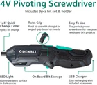 Introducing the Denali® 4-Volt Pivoting Screwdriver, a high-quality tool perfect for your home improvement needs. This screwdriver comes with a battery charger, attachments, and screwdriver bits, making it a complete set for your convenience. With a power of 350W and a voltage of 4.0, this screwdriver is sure to get the job done quickly and efficiently. The Denali® 4-Volt Pivoting Screwdriver is designed for ease of use and is lightweight, with a weight of only 1.34 pounds. It has a speed of 220.0 and a multi-color design that is perfect for any home decor. Whether you are a professional mechanic or a DIY enthusiast, this screwdriver is a must-have for your toolbox.