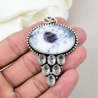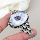 Dendrite Opal, White Topaz Gemstone Pendant 925 Sterling Silver Handcrafted Gift