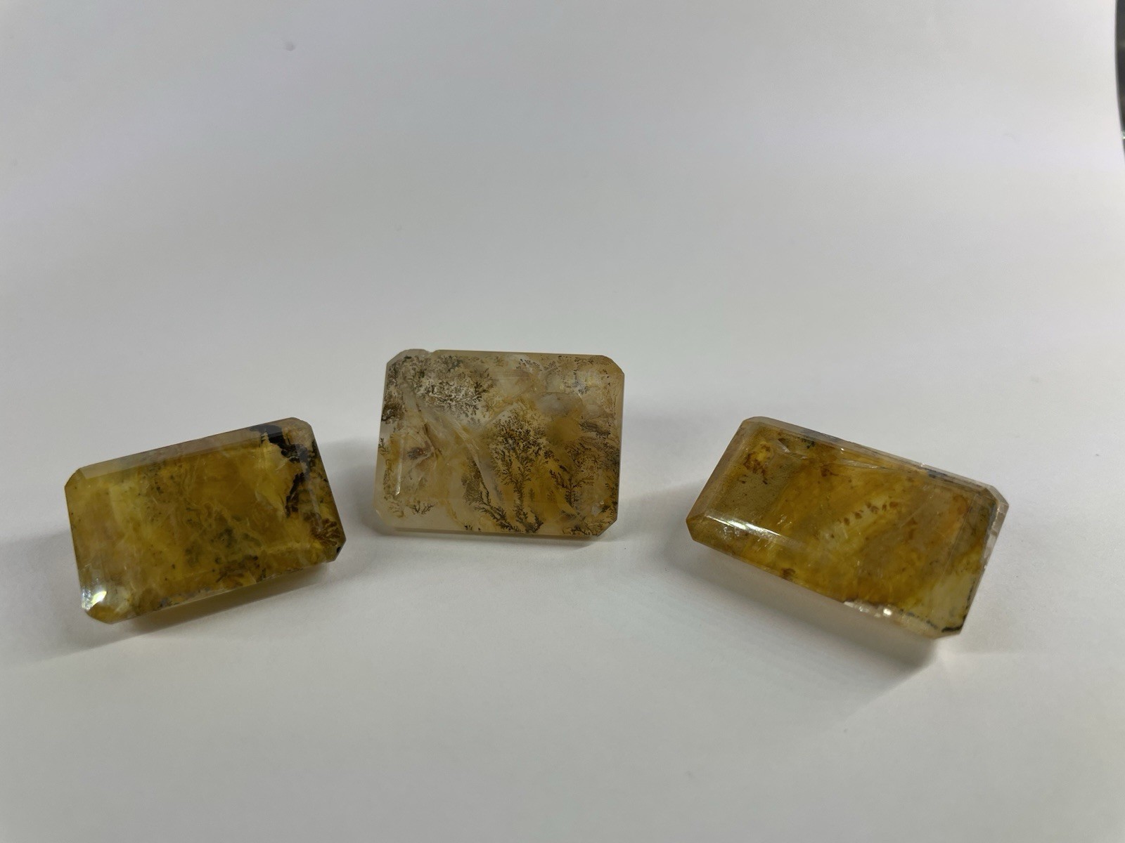 3-piece lot of rectangular loose dendritic quartz gemstones from Brazil. The gemstones are bi-color/multicolor with an excellent cut grade and emerald shape. They are natural and not enhanced, making them ideal for statement necklace or large ring. With a vintage look and wholesale availability, these gemstones offer unique and high-quality options for various crafting projects. Stones measure 27 x 20mm, 28x18mm, and 24x 17mm.