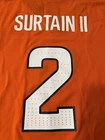 Get your little ones ready for game day with this officially licensed Denver Broncos Patrick Surtain II jersey. Made by NFL Team Apparel, this unisex children's jersey is perfect for any young fan of the National Football League. The bright orange color and Large size make it a standout piece for any young athlete or enthusiast. Featuring the Denver Broncos team logo and Patrick Surtain II's name and number on the back, this jersey is a must-have for any young fan of the team. Whether they're watching the game at home or at the stadium, this jersey is sure to make them feel like a true fan. And with a retail price of $60, it's an affordable way to show your support for the team. Order now and give your child the gift of football!
