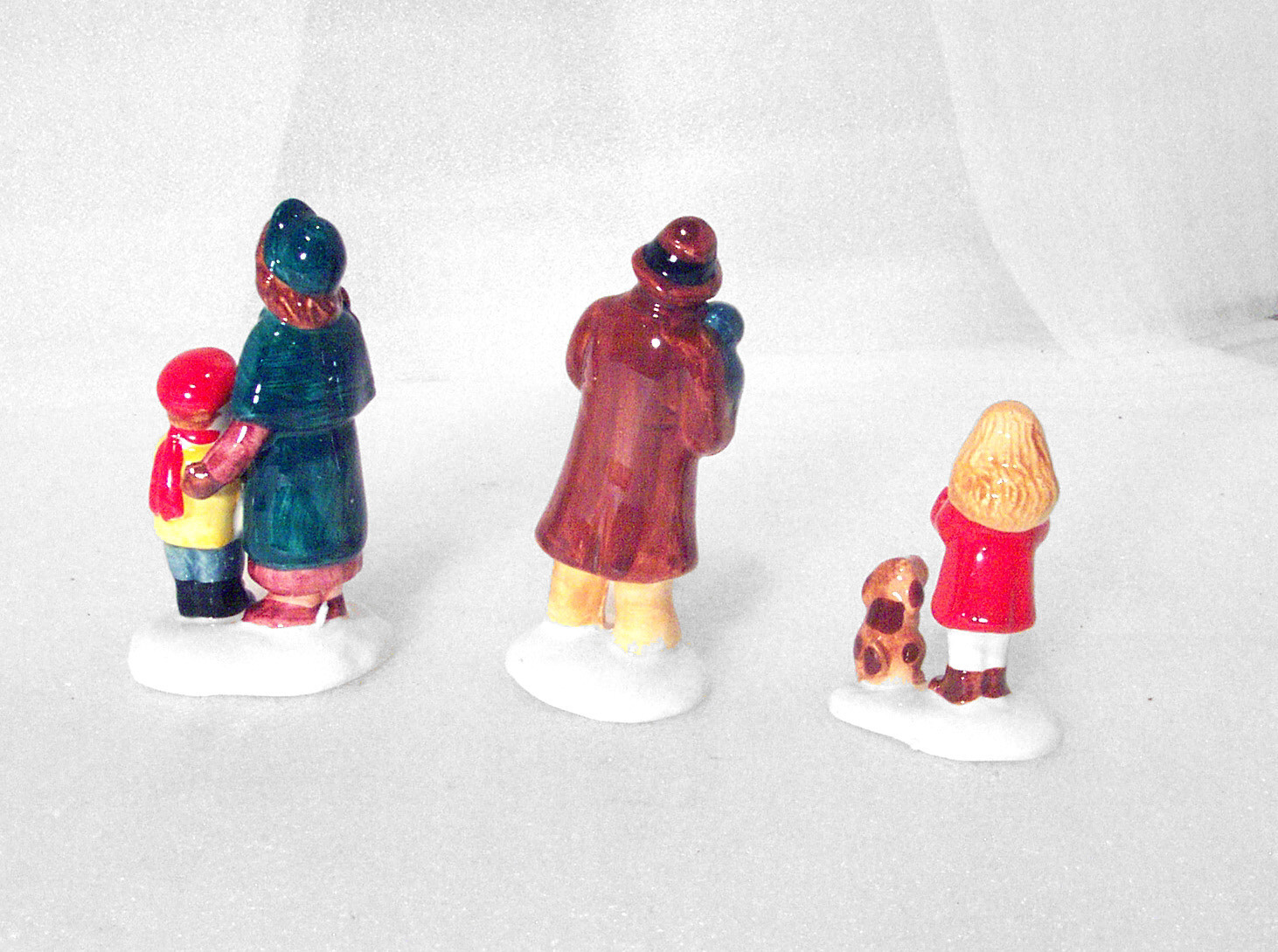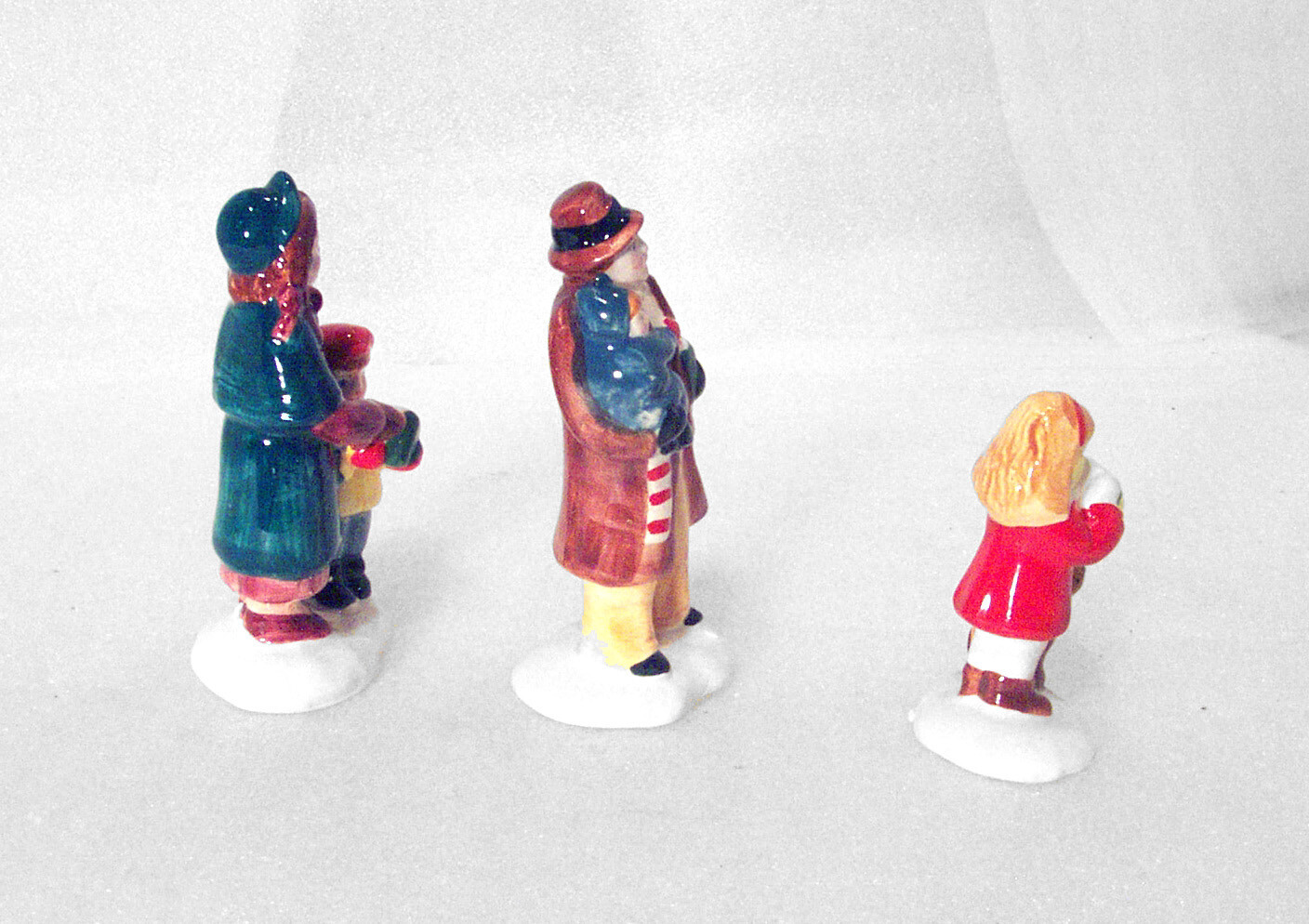 Vintage Department 56 Christmas Village Set of 3 Carolers. #5105-5. Featured are a caroling family: Mother and son (3 ½”); Father holding small child (3 5/8”) and Girl with dog (2 ½”). Please Note: There is some unevenness to paint from the manufacturing process to bottom of the girl the father is holding and paint is missing to the side of the boy’s face, also from the manufacturing process. Items come in their original box, but please note there is a large discoloration mark on box. Item is being offered, “As is”. PLEASE NOTE: Please forgive the Lighting. I do my best to describe the item as well as possible. In the event item does not arrive to you as described, Please contact me before leaving a Feedback. --------------------------- Buyer pays Actual Shipping plus $0.60 Packaging Fee. Sorry, No Local Pickups. Shipping weight approximately 0 pounds 10 ounces. All communications must be in English. Items are packaged prior to Listing, Therefore No Combined Shipping. --------------------------- If I do not receive a response from the winning bidder after one week, the item will be re-listed. Please contract us if you have any questions. Thank you for your consideration. THDZZ 24125 9x8x5 C1992
