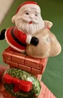 Dept 56 ceramic accessory lighted chimney w/ fireplace Does not have the lighted cord but does have the option on the left side of the fireplace 12" tall 6" across 2" deep. Featuring a little mouse sitting right by the logs, 2 stockings hanging from the mantel, a wreath at the top with Santa attempting to climb down the chimney with his presents #1/70