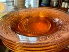 Pink Depression Shallow Soup Bowl Salad Plate 9" Beaded Center Lot of 5 LOT OF 5 These measure 9" GREAT CONDITION NO DEFECTS no Chips nor cracks Minor Wear from Age Free Shipping for the Buyer