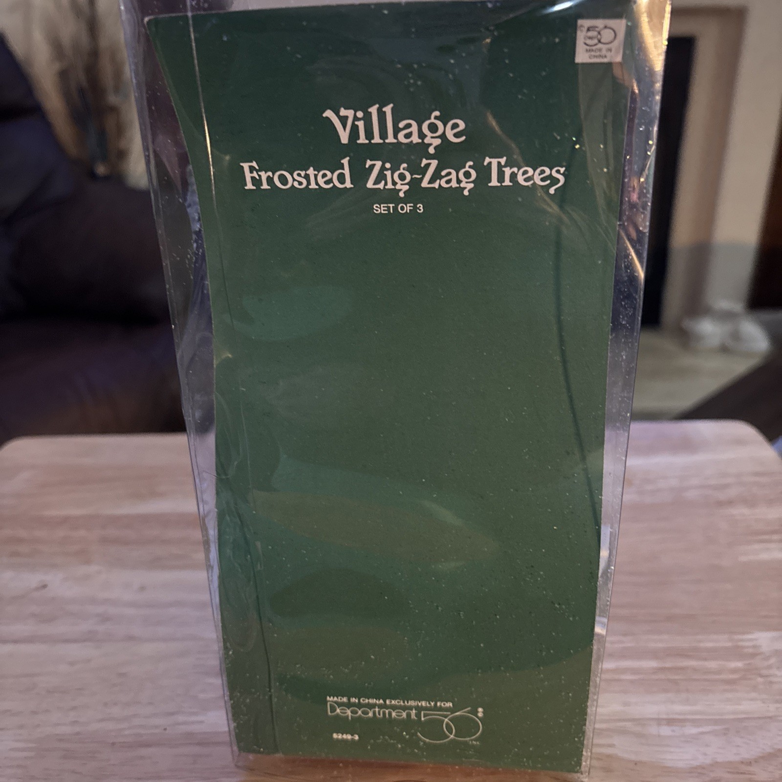The Dept 56 Village Frosted Zig-Zag Trees Accessories Set of 3 in White #5249-3 is a traditional Christmas village accessory with an asymmetrical zig-zag pattern. These medium-sized trees are perfect for decorating windows, floors, or furniture in any room. Made by Department 56, the set includes glitter accents, comes boxed and is part of the seasonal collection. The frosted finish adds a touch of elegance to these indoor decorations, making them a charming addition to your holiday decor.