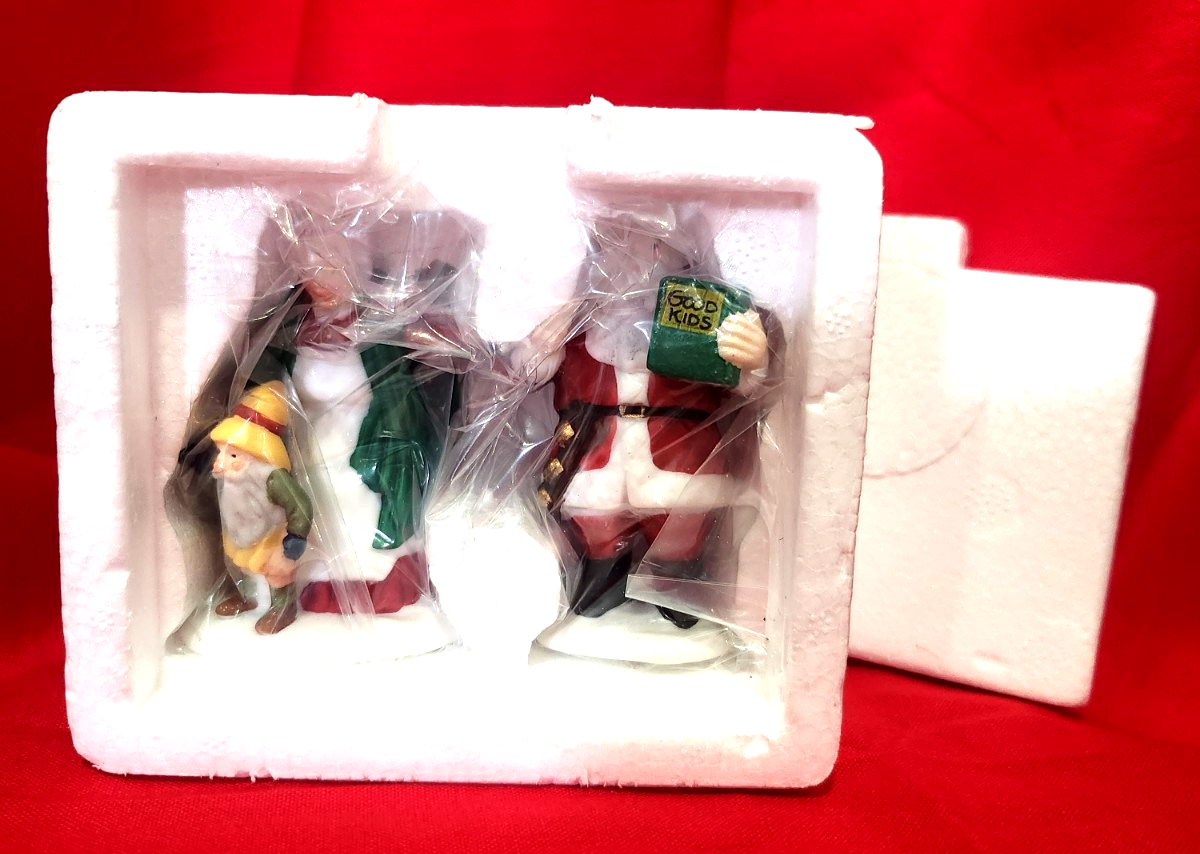Dept. 56 Heritage Village Collection "Santa & Mrs. Claus" is a set of 2 small figurines from 1989 suitable for Christmas occasions. Handmade from porcelain, these retired figurines feature Santa and Mrs. Claus in a multicolor design. They are boxed and part of the Heritage Village Collection by Department 56, representing a late 20th-century era. Ideal for village displays, these figurines are from China and are a part of the Heritage Village Collection character family. New without tags. Have never been removed from the box.