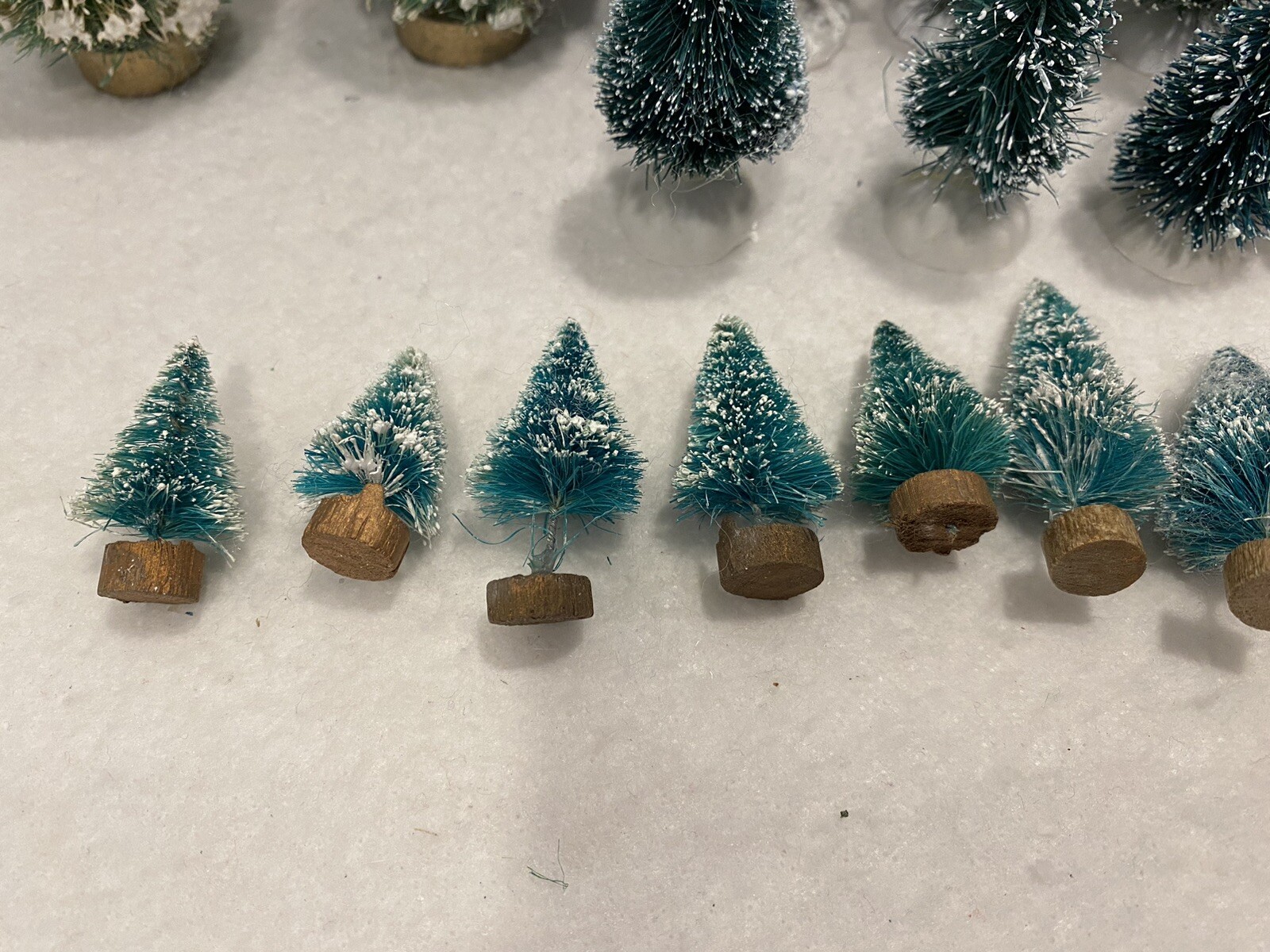 HomeDept 56 & Lemax Lot Of 39 Trees 1-1/2”-5.5” Good Used Cond, Snow Flecked