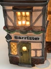 Add a touch of Victorian charm to your Christmas decor with this exquisite Dept 56 Heritage Village Collection piece. This hand-painted porcelain figurine features Silas Thimbleton Barrister, a beloved character from the Dickens Village series. The asymmetrical piece measures 4-1/2" in length, 8" in height, and 4" in width, making it a medium-sized addition to your collection. This retired, illuminated figurine is boxed and in excellent condition, ready to be displayed in any room of your home. Its whimsical pattern and multicolor finish make it a delightful addition to any Christmas village collection. Celebrate the season with this unique, original piece from the late 20th century, manufactured in Taiwan. Pristine condition with all original packaging including cord & light