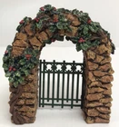 HomeDept 56 Stone Corner Posts with Holly Tree and Archway Christmas Village Display 52648