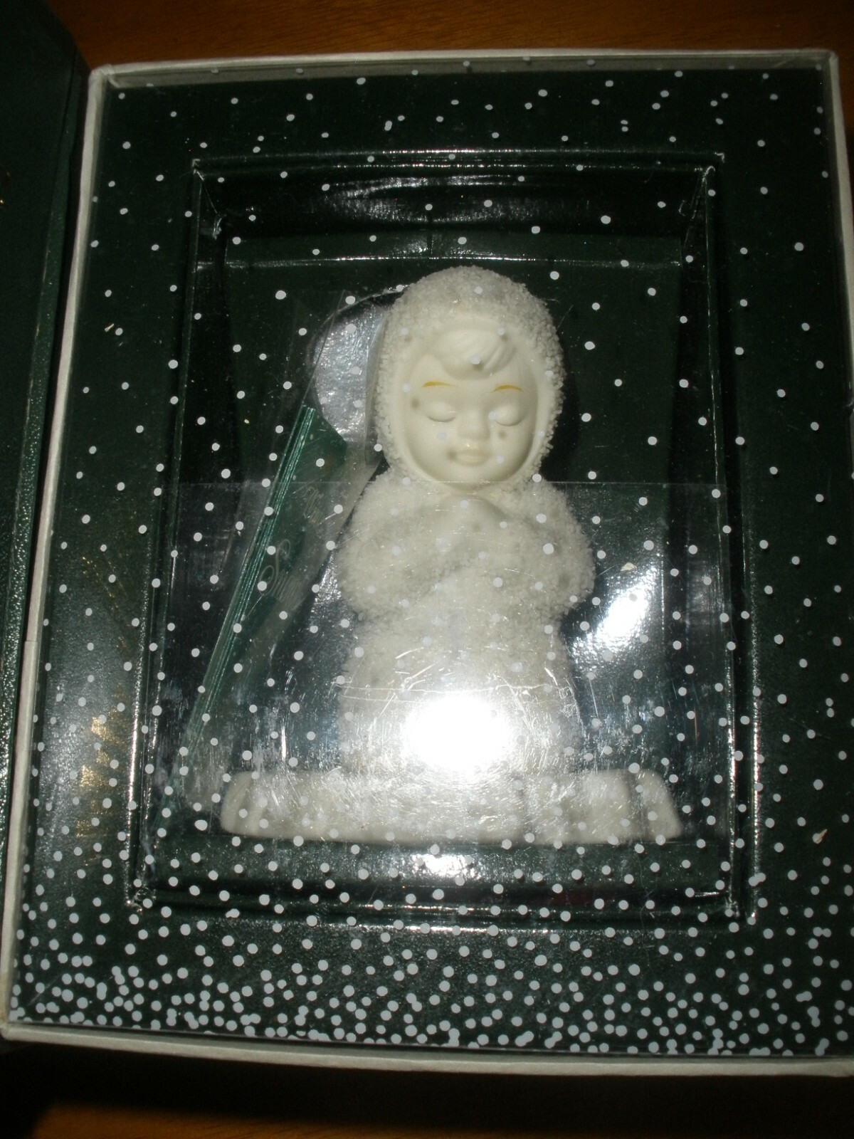 This is for Department 56 68390 Winter Tales of the Snowbabies "Now I Lay Me Down To Sleep" IT is preowned in the box. The box does show some damage on the side. - see pictures The figure is kneeling and praying. This is Part of the Winter Tales. The box is shaped like a book.