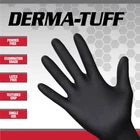 Derma-Tuff Powder-Free Disposable Nitrile Gloves Delivers superior protection for everyday tasks Designed for comfort and flexibility, our heavy duty Derma-Tuff nitrile gloves provide a snug fit, ensuring optimal dexterity without compromising on durability. With a non-allergenic and latex-free design, they cater to a wide range of users, making them the perfect general purpose gloves. Usage: Single Use Available Sizes: S, M, L, XL, 2XL Thickness: 6 mil Material: Nitrile Color: Black Grip: Textured Length: 9.5" HEAVY DUTY NITRILE DISPOSABLE GLOVES: The Derma-Tuff 6 Mil Powder-Free Heavy Duty Nitrile Gloves outperform the competition with their outstanding strength, puncture and chemical resistance, and dexterity. Perfect for everyday use—including automotive, work shops, agriculture, and plumbing—these no-latex nitrile gloves will help get you through your task. POWDER-FREE, LATEX-FREE: Perfect for cleaning, food service, and many kinds of MRO, the Derma-Tuff Disposable Gloves are made of latex-free, allergenic, powder-free nitrile which is known to be 3x-5x more puncture resistant than latex and strong enough to even protect from blood-born pathogens—making nitrile the preferred exam glove choice in the healthcare industry as well. BUILT FOR TOUGH JOBS: The Derma-Tuff Powder-Free Black Nitrile Gloves are 6 mils thick for outstanding hand protection. Featuring a beaded cuff for easy donning, the Derma-Tuff is fully textured for enhanced gripping power to confidently last through even the toughest jobs—from maintenance, industrial, and janitorial to automotive, refinishing, and machining. SANITARY AND HYGIENIC: prioritizes safety above all else, and we designed the Derma-Tuff Series with hygiene in mind. Crafted with optimal proprietary materials, these go-to single-use, disposable, ambidextrous nitrile gloves are available in an economic box of 100 count for ultimate worry-free sanitation. WHEN PROTECTION COUNTS: At Safety Corp., we dedicate ourselves to protect our most valuable resource: people. Our expansive product line of powder-free gloves in nitrile, chloroprene, and latex offers exceptional protection for professionals, multi-markets, and the DIYer across the spectrum of environments and industries.