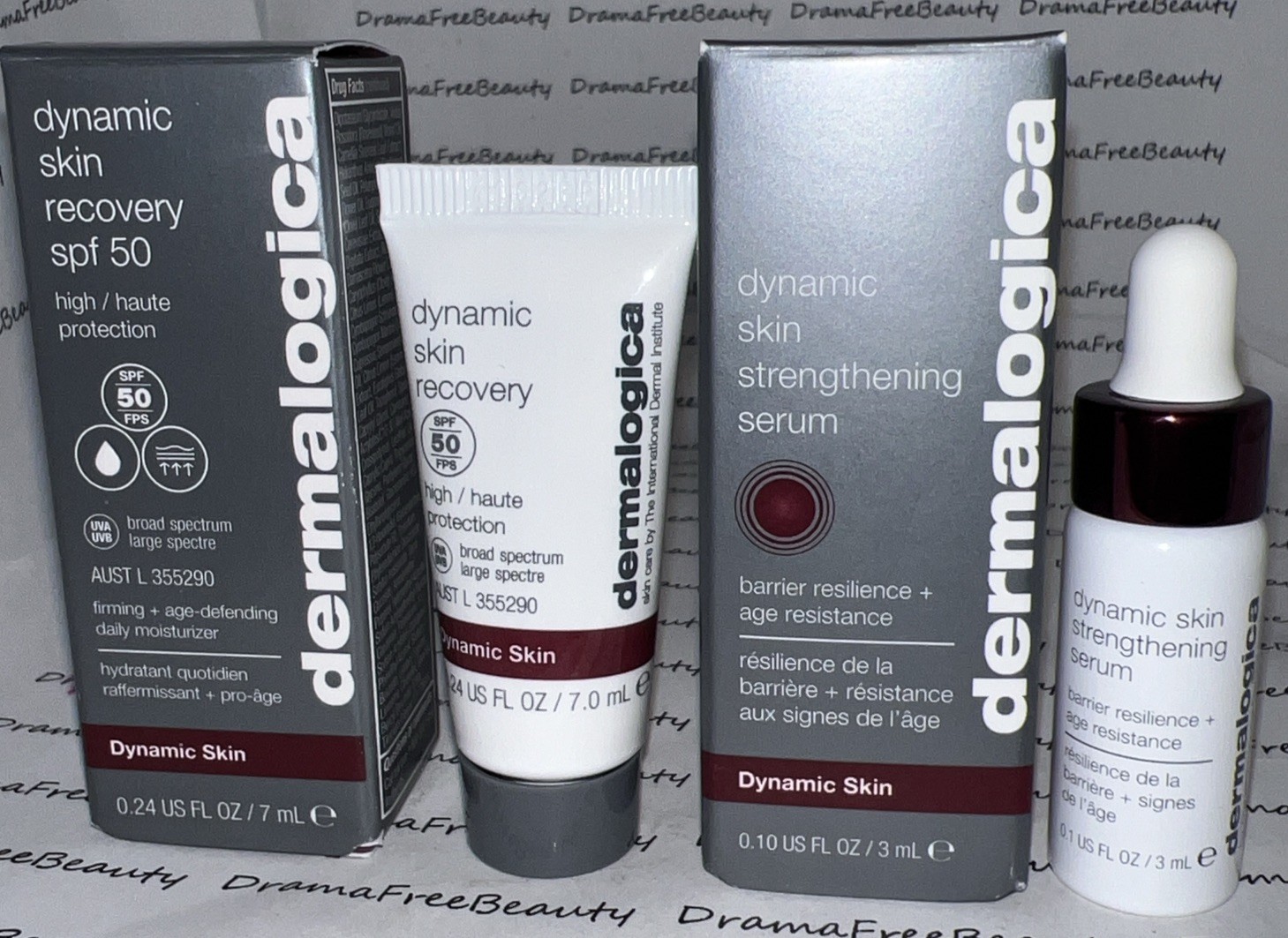 Dermalogica Dynamic Skin Recovery SPF 50 Firming + Age Defending Daily Moisturizer 7 ml. / 0.24 fl.oz., New in Box & Sealed Exp. 04/2026 & Dermalogica Dynamic Skin Strengthening Serum 3 ml. / 0.10 fl.oz., New in Box