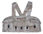 Manufacturer: TAIGEAR Three magazine pouches, holds two M16 magazine each Two large pouches One internal map pocket Adjustable padded shoulder straps with a pouch Adjustable quick release waist belt Fully adjustable to fit most users This Adjustable Tactical Chest Rig by Taigear is the perfect addition to any tactical gear collection. With the ability to hold M16 magazines and a variety of pouch pockets, this chest rig is both practical and stylish. The rig is made from high-quality materials that ensure durability and comfort, while the adjustable straps ensure a perfect fit for any body type. Whether you're a collector or an active tactical enthusiast, this chest rig is a must-have. This is the Desert tan color. The rear stock photo shows normal camo. The rear will have desert camo color.