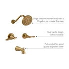 Design House 595728 Oakmont Classic Bath and Shower Trim with Single-Function Shower Head, 2-Handle Faucet and Valve for Bathroom, Brushed Gold Technical Details Brand Design House Color Brushed Gold Material Brass Finish Type Brushed Number of Handles 2 Handle Material Brass Item Weight 4.7 Pounds Mounting Type Wall Mount Spout Reach 12.1 Inches UPC 044321021566 Manufacturer Design House Item Weight 4.7 pounds Product Dimensions 12.1 x 14.2 x 78 inches Item model number 595728 Style Oakmont Finish Brushed Pattern Bathtub Shower Trim Kit Installation Method Wall Mount Item Package Quantity 1 Certification WaterSense Dual-handle design (8 inches between handles) with a brushed gold finish to easily adjust the temperature in your bathtub or shower (Valve included) Uses less water while keeping the shower head pressure high; 1.8 gallons per minute flow Includes shower head, slip-on tub diverter spout, two handle trim, and valve (behind the wall installation required) Pull-up diverter spout quickly disperses water Brass waterways to ensure safe and clean water for your family The Design House 595728 Oakmont 2-Handle Bath and Shower Trim is finished in a sleek brushed gold. This fixture is both refined and elegant with a washerless cartridge and simple design that aids in low-maintenance upkeep. Brass waterways to ensure safe and clean water for your family. The single-function shower head has a 1.8-gallon per minute flow rate which ensures a steady water flow after years of everyday use. Designed and manufactured by Design House, the trusted source for quality lighting, hardware, plumbing, kitchen, and bath products for every taste and budget. Shipping We offer FREE shipping on all orders! We ship within Three business days of payment, usually sooner. We use a selection of shipping services such as UPS, FedEx, USPS etc. We only ship to the lower 48 states, no APO/FPO addresses or PO Boxes allowed. Local pickups and combined shipping options are not provided at this time. Return You can return a product for up to 30 days from the date you purchased it. Any product you return must be in the same condition you received it and in the original packaging. Please keep the receipt. Payment We accept payment by any of the following methods: PayPal Please pay as soon as possible after winning an auction, as that will allow us to post your item to you sooner! Feedback Customer satisfaction is very important to us. If you have any problem with your order, please contact us and we will do our best to make you satisfied. Contact Us If you have any queries, please contact us via ebay. We usually respond within 24 hours on weekdays. Please visit our eBay store to check out other items for sale! Thank you for shopping at our store.