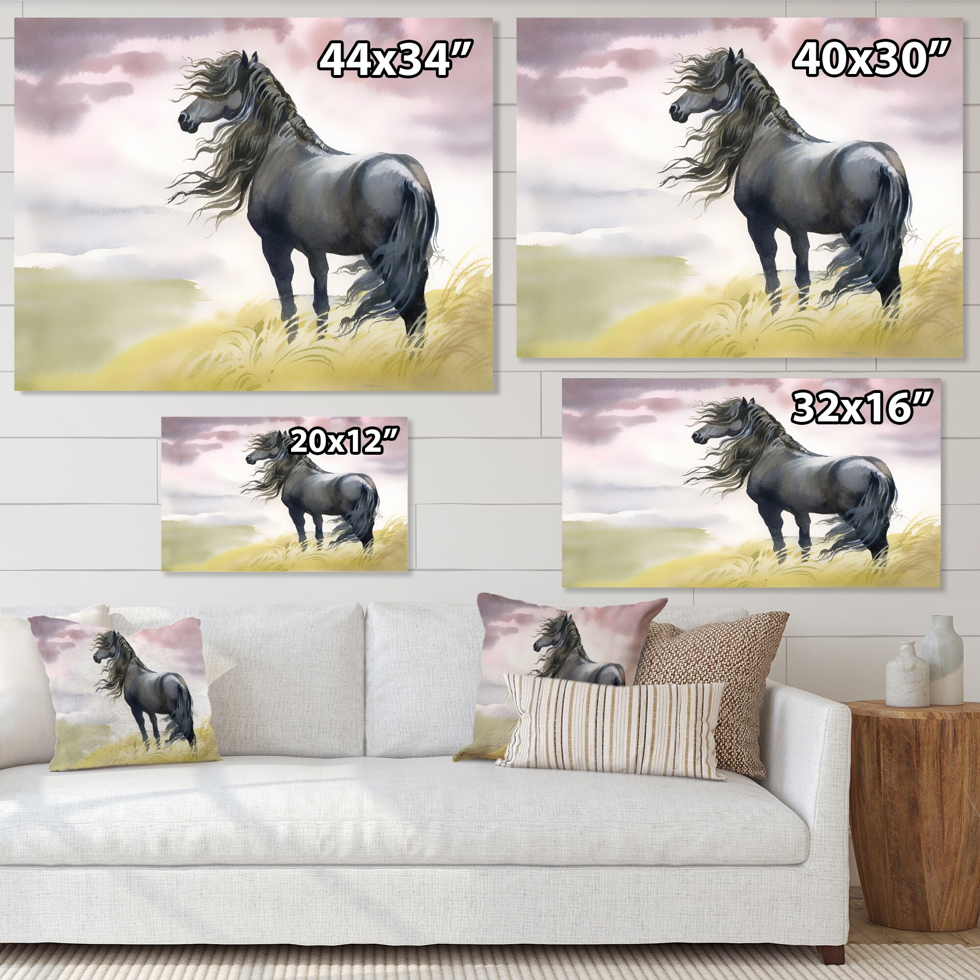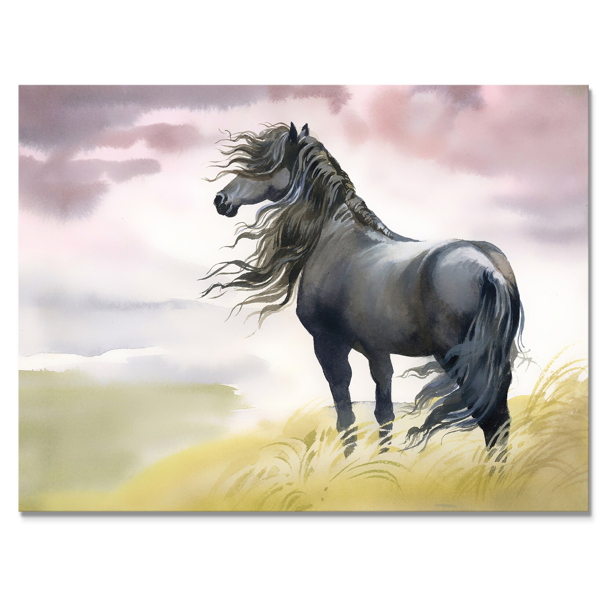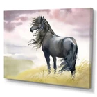This beautiful Black Horse In A Field Canvas Art is printed using the highest quality fade-resistant ink on canvas. Every one of our fine art giclee canvas prints is printed on premium quality cotton canvas, using the finest quality inks which will not fade over time. Each giclee print is stretched tightly over a 1-inch wood sub frame for small size prints or a 1.5-inch wood subframe for large size prints (40x30 60x28 ...) ensuring the canvas is taught and does not buckle. This canvas art print is gallery-wrapped (the design continues on the sides), giving it a real art gallery feel. All of our canvas prints are carefully packaged with plastic protection, fragile labeling, and sturdy boxes to ensure safe delivery. Every canvas print arrives ready to hang on the wall, with the hanging kits Free Shipping Over $49.99* Details Designart "Black Horse In A Field" Traditional Canvas Wall Art Print Product Description: This beautiful Black Horse In A Field Canvas Art is printed using the highest quality fade-resistant ink on canvas. Every one of our fine art giclee canvas prints is printed on premium quality cotton canvas, using the finest quality inks which will not fade over time. Each giclee print is stretched tightly over a 1-inch wood sub frame for small size prints or a 1.5-inch wood subframe for large size prints (40x30 60x28 ...) ensuring the canvas is taught and does not buckle. This canvas art print is gallery-wrapped (the design continues on the sides), giving it a real art gallery feel. All of our canvas prints are carefully packaged with plastic protection, fragile labeling, and sturdy boxes to ensure safe delivery. Every canvas print arrives ready to hang on the wall, with the hanging kits included. - Style Traditional - Subject Animals, Portrait - Color Black - This canvas giclee print is gallery-wrapped (the design continues on the sides) , giving it a real art gallery feel. - Premium quality cotton canvas. - Arrives ready to hang on the wall - Easy to Hang