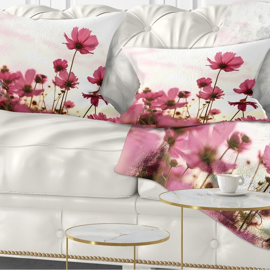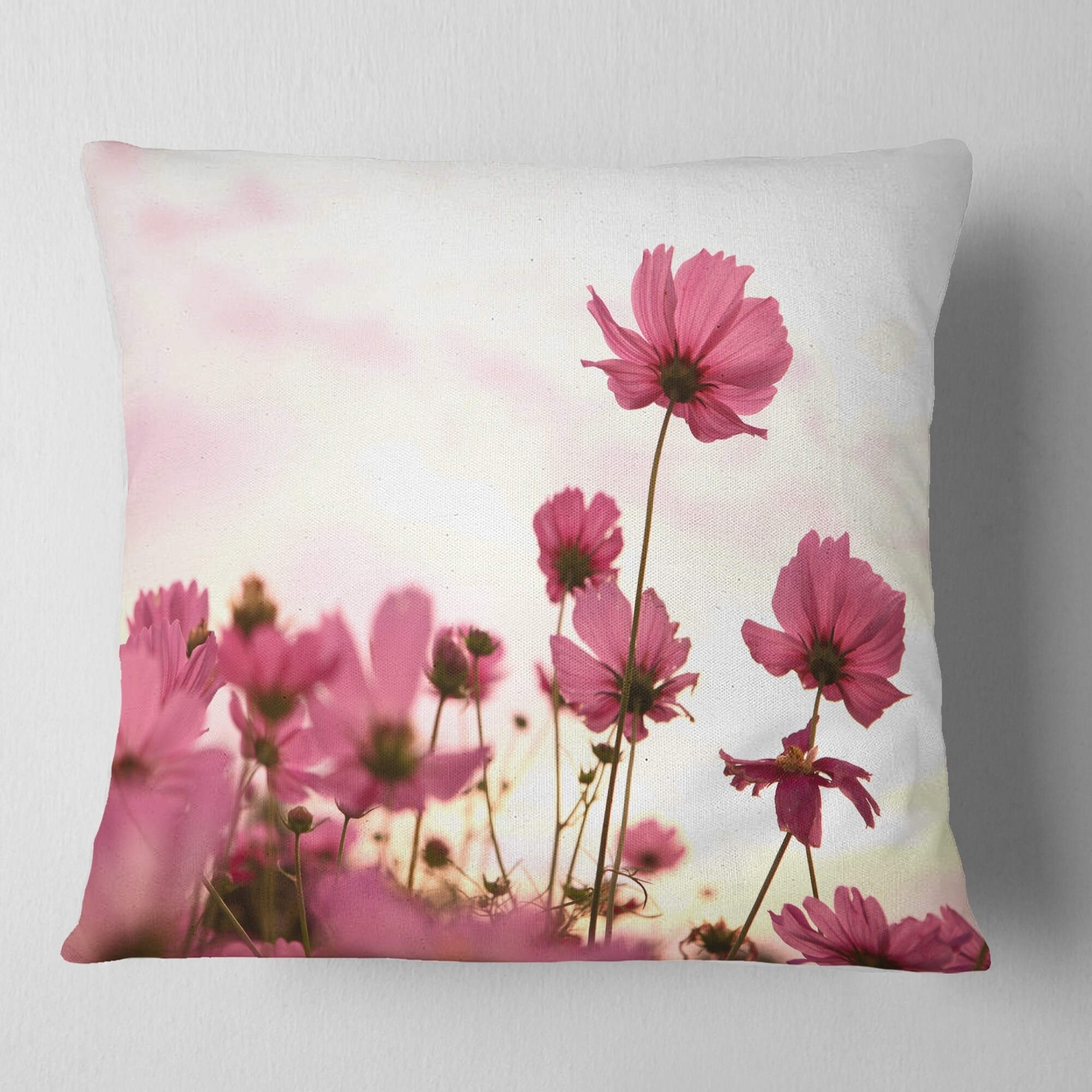 Decorative Throw Pillows for Couch Bed Sofa with Zip CoversAn easy, fun way to add a pop of color or bring new life to any room in your home or office is with these beautiful Floral throw pillows. Dress up your bed, sofa or lounger with this decorative design art pillows. Perfect as Farmhouse bedroom décor, lounge décor Traditional living room décor. It adds a fun accent to any room. Throw pillows really do work wonders: they can transform any room from uninviting discomfort to warm and welcoming. And they really do go almost anywhere - arrange a couple on the couch or sofa, place one in your overstuffed chair for extra coziness, toss a couple on the bed and prop yourself up for a great read.These Floral pillow is printed using High Color Density Italian inks to create a vibrantly colored, Free Shipping Over $49.99* Details Designart 'Cosmos Flowers Meadow At Sunset' Floral Throw Pillow Product Description: Decorative Throw Pillows for Couch Bed Sofa with Zip Covers An easy, fun way to add a pop of color or bring new life to any room in your home or office is with these beautiful Floral throw pillows. Dress up your bed, sofa or lounger with this decorative design art pillows. Perfect as Farmhouse bedroom décor, lounge décor Traditional living room décor. It adds a fun accent to any room. Throw pillows really do work wondersthey can transform any room from uninviting discomfort to warm and welcoming. And they really do go almost anywhere - arrange a couple on the couch or sofa, place one in your overstuffed chair for extra coziness, toss a couple on the bed and prop yourself up for a great read. These Floral pillow is printed using High Color Density Italian inks to create a vibrantly colored, sharp artwork. Features: Perfect accent to any furniture piece Basic shapes with a modern graphic design twist Printed on 100% light weight polyester Cushion filled with 100% polyester fill Wrinkle resistant fabric Zip Closure so you can remove the pillow from its' cover Down-like comfort - Odorless 100% Hypoallergenic Machine Wash Cold Separately, Gently Cycle Only, No bleach, hang to dry Print on Demand with High Density Italian Ink Available in Several sizes Attribute :Farmhouse, Traditional, Modern Subject Floral, Landscapes, Country Charm