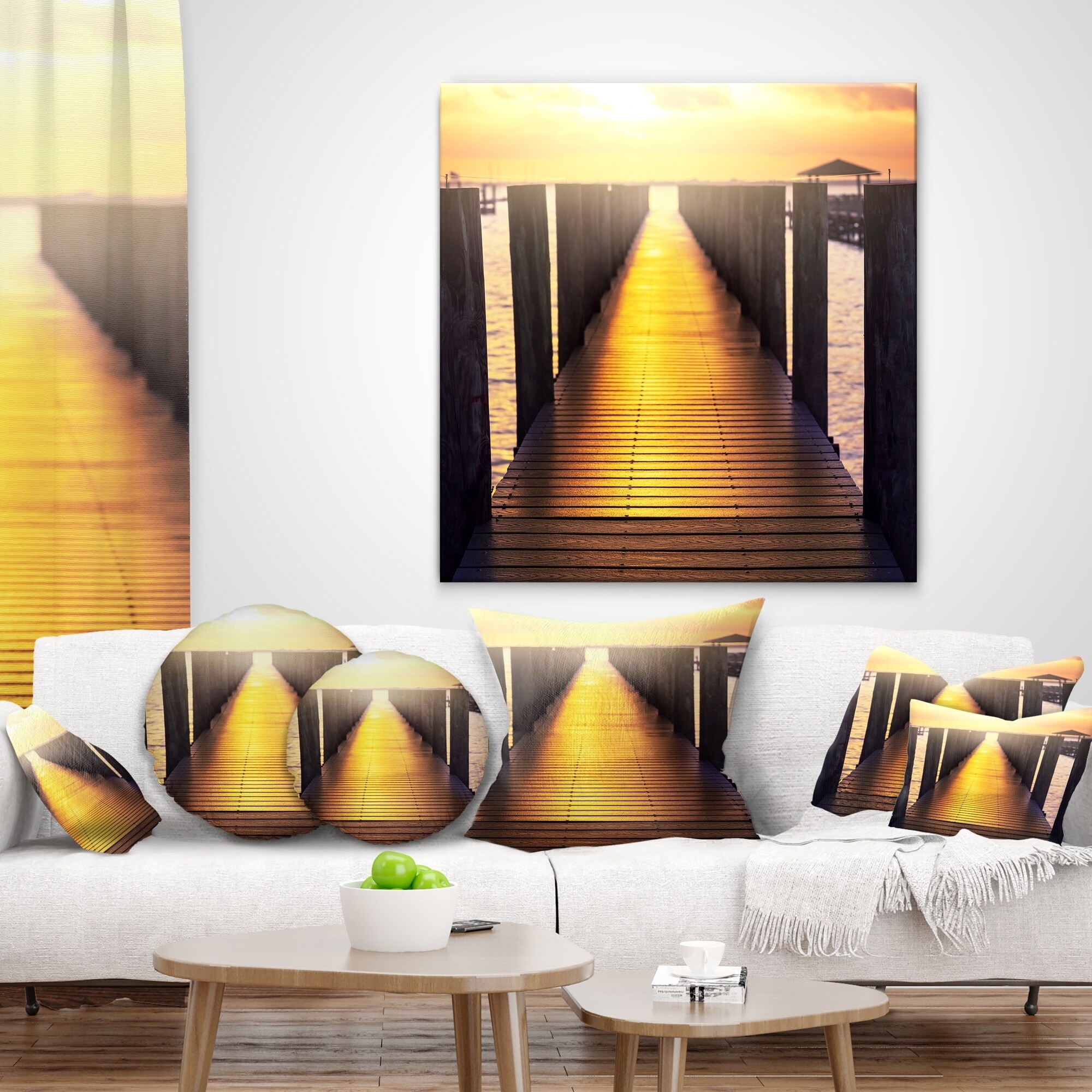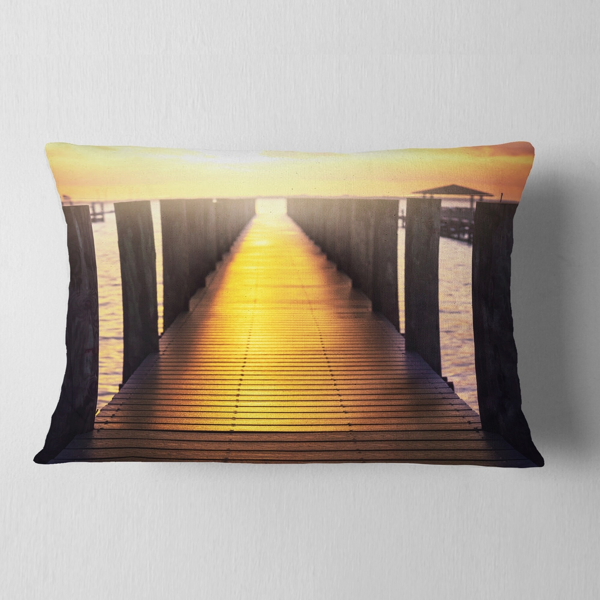 Decorative Throw Pillows for Couch Bed Sofa with Zip CoversAn easy, fun way to add a pop of color or bring new life to any room in your home or office is with these beautiful Pier & Bridge throw pillows. Dress up your bed, sofa or lounger with this decorative design art pillows. Perfect as Beach bedroom décor, lounge décor Coastal living room décor. It adds a fun accent to any room. Throw pillows really do work wonders: they can transform any room from uninviting discomfort to warm and welcoming. And they really do go almost anywhere - arrange a couple on the couch or sofa, place one in your overstuffed chair for extra coziness, toss a couple on the bed and prop yourself up for a great read.These Sea & Shore pillow is printed using High Color Density Italian inks to create a vibrantly Free Shipping Over $49.99* Details Designart 'Sea Bridge with Sunset Reflection' Seashore Throw Pillow Product Description: Decorative Throw Pillows for Couch Bed Sofa with Zip Covers An easy, fun way to add a pop of color or bring new life to any room in your home or office is with these beautiful Pier & Bridge throw pillows. Dress up your bed, sofa or lounger with this decorative design art pillows. Perfect as Beach bedroom décor, lounge décor Coastal living room décor. It adds a fun accent to any room. Throw pillows really do work wondersthey can transform any room from uninviting discomfort to warm and welcoming. And they really do go almost anywhere - arrange a couple on the couch or sofa, place one in your overstuffed chair for extra coziness, toss a couple on the bed and prop yourself up for a great read. These Sea & Shore pillow is printed using High Color Density Italian inks to create a vibrantly colored, sharp artwork. Features: Perfect accent to any furniture piece Basic shapes with a modern graphic design twist Printed on 100% light weight polyester Cushion filled with 100% polyester fill Wrinkle resistant fabric Zip Closure so you can remove the pillow from its' cover Down-like comfort - Odorless 100% Hypoallergenic Machine Wash Cold Separately, Gently Cycle Only, No bleach, hang to dry Print on Demand with High Density Italian Ink Available in Several sizes Attribute :Beach, Coastal, Tropical Subject Sea & Shore, Nautical, Landscapes