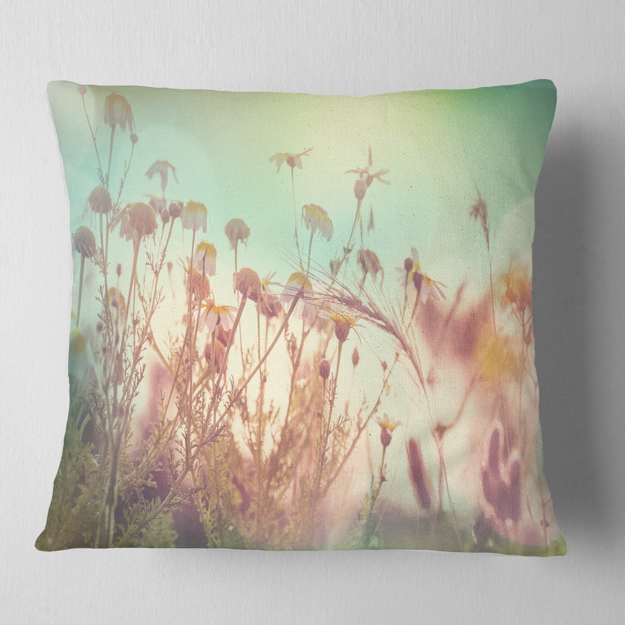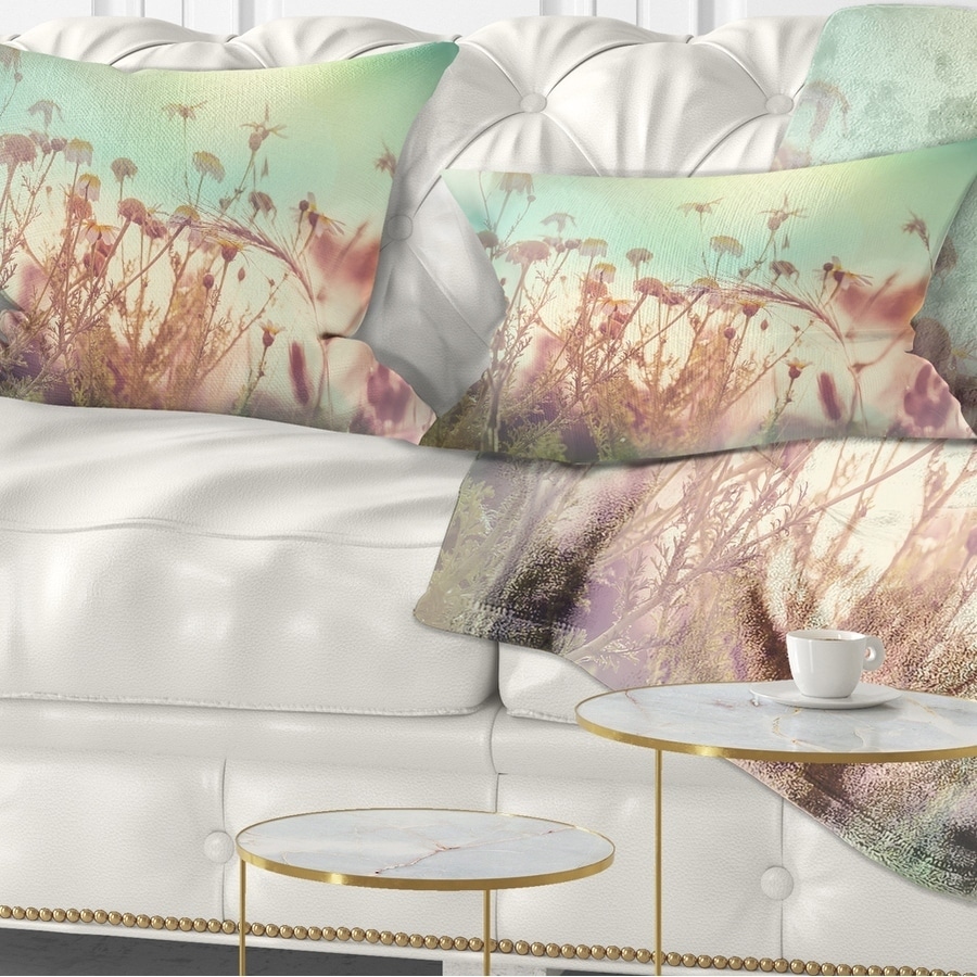 Decorative Throw Pillows for Couch Bed Sofa with Zip CoversAn easy, fun way to add a pop of color or bring new life to any room in your home or office is with these beautiful Floral throw pillows. Dress up your bed, sofa or lounger with this decorative design art pillows. Perfect as Farmhouse bedroom décor, lounge décor Traditional living room décor. It adds a fun accent to any room. Throw pillows really do work wonders: they can transform any room from uninviting discomfort to warm and welcoming. And they really do go almost anywhere - arrange a couple on the couch or sofa, place one in your overstuffed chair for extra coziness, toss a couple on the bed and prop yourself up for a great read.These Floral pillow is printed using High Color Density Italian inks to create a vibrantly colored, Free Shipping Over $49.99* Details Designart 'Summer Wild Flowers and Grass' Flower Throw Pillow Product Description: Decorative Throw Pillows for Couch Bed Sofa with Zip Covers An easy, fun way to add a pop of color or bring new life to any room in your home or office is with these beautiful Floral throw pillows. Dress up your bed, sofa or lounger with this decorative design art pillows. Perfect as Farmhouse bedroom décor, lounge décor Traditional living room décor. It adds a fun accent to any room. Throw pillows really do work wondersthey can transform any room from uninviting discomfort to warm and welcoming. And they really do go almost anywhere - arrange a couple on the couch or sofa, place one in your overstuffed chair for extra coziness, toss a couple on the bed and prop yourself up for a great read. These Floral pillow is printed using High Color Density Italian inks to create a vibrantly colored, sharp artwork. Features: Perfect accent to any furniture piece Basic shapes with a modern graphic design twist Printed on 100% light weight polyester Cushion filled with 100% polyester fill Wrinkle resistant fabric Zip Closure so you can remove the pillow from its' cover Down-like comfort - Odorless 100% Hypoallergenic Machine Wash Cold Separately, Gently Cycle Only, No bleach, hang to dry Print on Demand with High Density Italian Ink Available in Several sizes Attribute :Farmhouse, Traditional, Modern Subject Floral, Landscapes, Country Charm