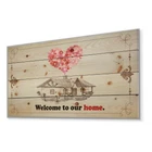 Greet your guests with this beautiful Entrance Wall Art to make them feel welcome. Once typically found only in rustic or farmhouse style decor settings, this Illustration wood wall art will easily fit into even the most contemporary of homes or offices.Using the highest quality 6 Color Canon UV Ink, this, this vintage wood wall art incorporates several aspects of fine design into one stunning piece. With its slightly visible wood grain appearing through the colors and sleekly finished edges, it is a wonderful choice for any room in your home or office, being it a traditional or modern space. As each piece of wood has natural grain differences from the next, each of these wood wall arts is a truly unique addition to your space.Each Wood wall art is 100% handmade in Canada on Natural pine Free Shipping Over $49.99* Details Designart 'Welcome to our home. Vintage drawing' Textual Entrance Art on Wood Product Description: Greet your guests with this beautiful Entrance Wall Art to make them feel welcome. Once typically found only in rustic or farmhouse style decor settings, this Illustration wood wall art will easily fit into even the most contemporary of homes or offices. Using the highest quality 6 Color Canon UV Ink, this, this vintage wood wall art incorporates several aspects of fine design into one stunning piece. With its slightly visible wood grain appearing through the colors and sleekly finished edges, it is a wonderful choice for any room in your home or office, being it a traditional or modern space. As each piece of wood has natural grain differences from the next, each of these wood wall arts is a truly unique addition to your space. Each Wood wall art is 100% handmade in Canada on Natural pine wood, using the highest quality ink which will not fade over time. Available in size :40x20 - OrientationHorizontal - SubjectIllustration TypeWood Wall Art, Fine Art, Wood Fine Art, Print on Plaque - Arrives ready to hang on the wall with hanging kit included - MaterialMade with 100% natural pine wood - Stylevintage - Number of Pieces1