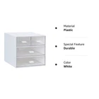 Desk Organizer with Drawer, Office Organizer with 4 Drawers, Desk Storage Box for, Desktop, Dressing table, Office, School, Home, Plastic Box and 4 Acrylic Drawers(White) ✓ Free 60 Day Returns ✓ Free Express Shipping Description: Features: Drawer design, Multi-purposeOur storage box, with drawer design, is not only beautiful and elegant, but also can be used in different scenarios, such as office storage, dressing table storage, bathroom toiletries storage, cosmetic storage, etc. Preferred material, Smooth touchThis office storage box is made of non-toxic ABS material without any harm. The hard plastic shell and acrylic drawers make our storage boxes very comfortable to the touch Strong and durable, Rounded cornersIt is sturdy and durable enough to be used for a long time, the rounded corners can protect our fingers from injury, and it is safe to use Simple and fashionable, Smooth pullingThe shape is simple and stylish, which is in line with most people's aesthetics, the perfect feel, and the silicone handle makes the opening and closing of the drawer so smooth. Grooved design, stackedUnique groove design, stable stacking, not easy to tilt, so that we can stack multiple storage boxes Product Details: Color: White Material: Plastic Frame Material: Plastic Brand: Zyners Product Dimensions: 6.5"D x 6.1"W x 5.5"H Color: White Material: Plastic Frame Material: Plastic Brand: Zyners Product Dimensions: 6.5"D x 6.1"W x 5.5"H Number of Drawers: 4 Assembly Required: Yes Manufacturer: Zyners Part Number: PH3053 Item Weight: 1.54 pounds Country of Origin: China Item model number: PH3053 Finish: Abs,Acrylic,Silicone Mounting Type: Tabletop Special Features: Stackable, Durable Usage: Cosmetic Storage Included Components: Desk Organizer with Drawer Batteries Included?: No Batteries Required?: No Date First Available: November 26, 2021