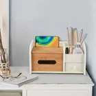 Desktop Organizer Home Office Desk Drawer Organizer Durable Wood With Tissue Box