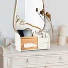 Desktop Organizer Home Office Desk Drawer Organizer Durable Wood with Tissue box and Cell phone holder slot Features: Product name : Desk Storage Organizer Material: MDF and bamboo Color: White Quantity: 1 pcs Size: approx. 30x15x14 cm/11.81 x5.90 x 5.51inch Gross weight: 1.5kg/3.30lb D escription : [Sense of use]: novel, practical design, can be rotated to use, easy to pick up, save time and effort. [Sense of experience]: light weight, easy to carry and use, can be placed on a variety of countertops and desk tops. [Design]:Multi-layer space design, easy to store various items and small part, so that your desktop is neats and tidy. [Texture]:Wooden material, sturdy and durable, can be divided into meticulous storage of documents and information classification in order, fast access to documents. [Design Sense]:Simple and generous design, suitable for organizing and storing various pens, books, scissors, remote control, etc. include: One office supplies desk storage organizer