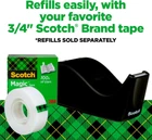 Deluxe two-tone desktop tape dispenser with weighted base Sleek wave design complements any décor Ideal for easy, one-handed dispensing High-quality cutting blade lasts for years Attached hub won't get lost or misplaced Non-skid base Weighted base for one-handed dispensing Holds 1 in. core tape, up to 3/4 in. wide and 1500 in. long 2.8 in. x 2.3 in x 6.3 in Try other quality products from Scotch Brand for all your needs in the home and office Scotch Desktop Office Tape Dispenser is a deluxe, black two tone desktop tape dispenser with a weighted base. The sleek wave design complements any décor. The weighted, non skid base is ideal for easy, one handed dispensing. It has an attached tape hub to prevent loss and a high quality cutting blade, designed to last for years. Dispenses standard tapes on a 1 in. core up to 3/4 in. wide and 1500 in. long. Scotch Tape Dispensers allow you to have your favorite tapes handy and ready to use!