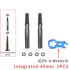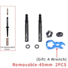 Name:Presta Valve Extender Material:Aluminum Alloy Usage: Extension presta valve Color:Black Quantity: 1 set (2pcs) Size:45mm/80mm Style:Integrated/Removable Model:RA108 Package A/B includes:1 set Valve Extender,1pc Mini Wrench Package C includes:100pcs Sealing Rings Specification: Size 1:Integrated-45mm/80mm Size 2:Removable-45mm/80mm Weight1:Integrated-45mm 1 set 10.47g Weight2:Integrated-80mm 1 set 16.15g Weight3:Removable-45mm 1 set 7.2g Weight4:Removable-80mm 1 set 10g Weight5:Removable Presta Valve Sealing Ring 100PCS/Bag 2.54g Features: Double sea l design, more reliable! Removable structure Original valve core RISK Extender Lock nut-Fixed extender,no shaking,more silent! Buffer rubber ring-Protect rims Wrench position Silicone seal-Better air tightness. Original valve (Removable) Integrated structure Sealing ring Anti-slip design . Wrench position-Locking without air leakage RISK Extender Sealing ring-No air leakage under high pressure. Original valve (Integrated ) Anti-slip design By this way, it's not easy to loose the valve when pumping under high pressure. 2 extenders can get a multifunctional wrench! Hand-tightening nut is not strong enough, it's easy to vibrate loose during riding! Buy 2 extenders can get a multi-function wrench for free! With the help of Installion wrench, you can avoid vibration loosening when long term riding ! Note: Installation in place, do not over tighten.